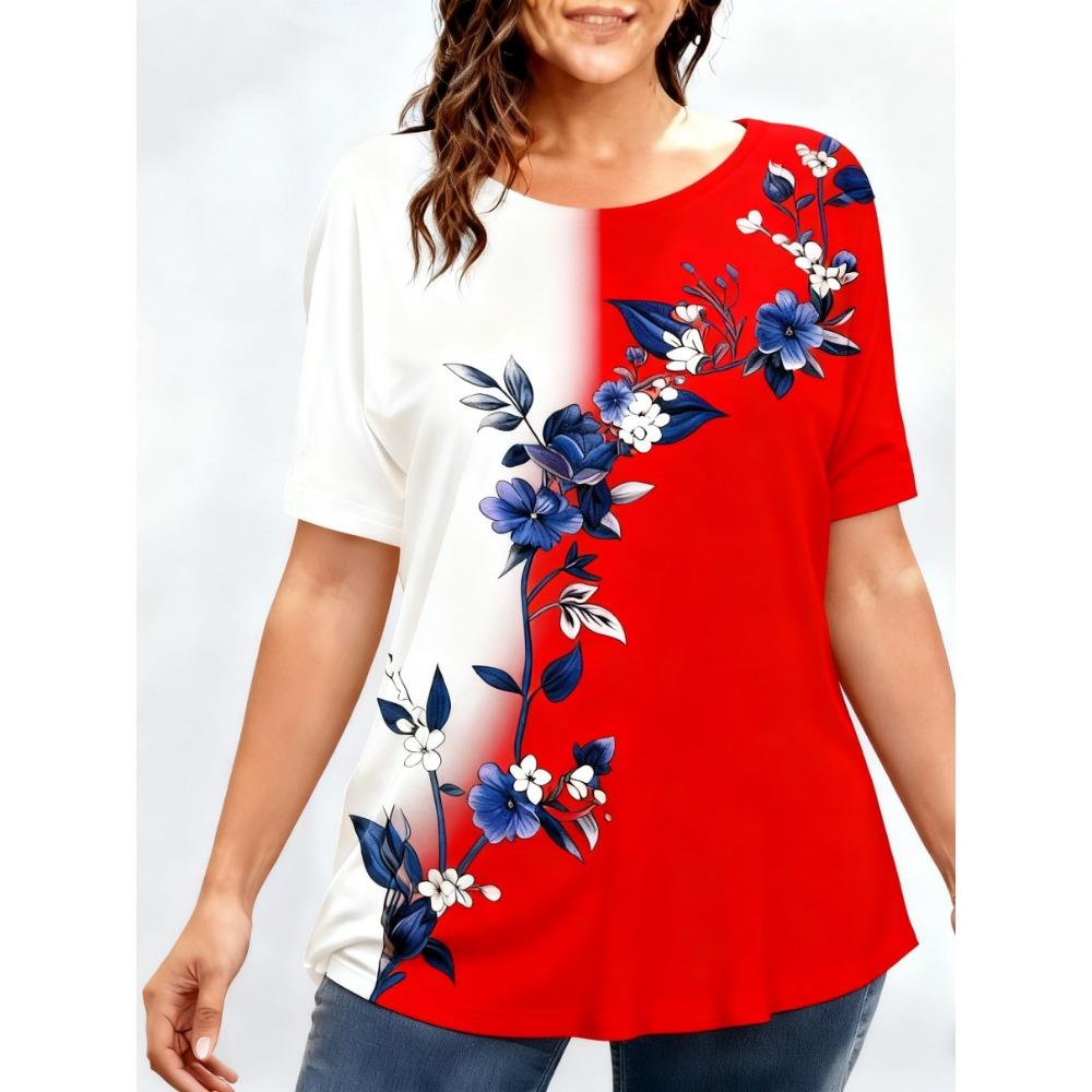 Женские футболки больших размеров XL-7XL Женская футболка с круглым вырезом, модная, с цветочной лоскутной вставкой, цветным принтом, коротким рукавом — купить товар онлайн с бесплатной доставкой по всему миру!