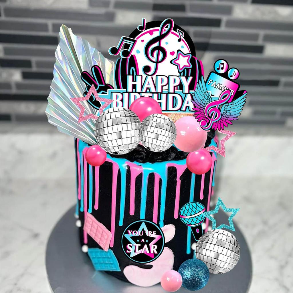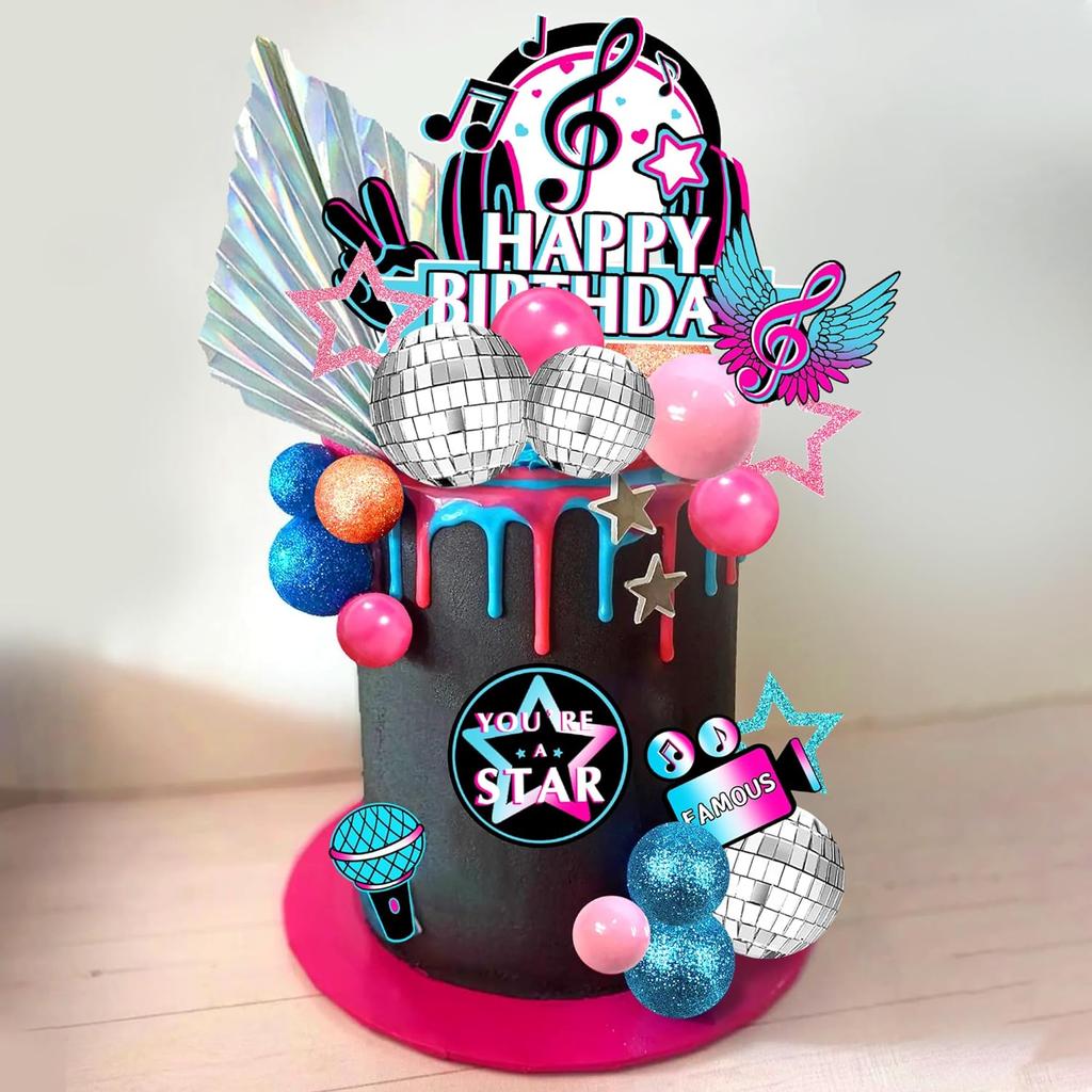 Музыкальные топперы для торта Музыкальные украшения для торта на день рождения для набора музыкальных топперов для торта Девичья музыкальная тема Караоке Вечеринка на день рождения