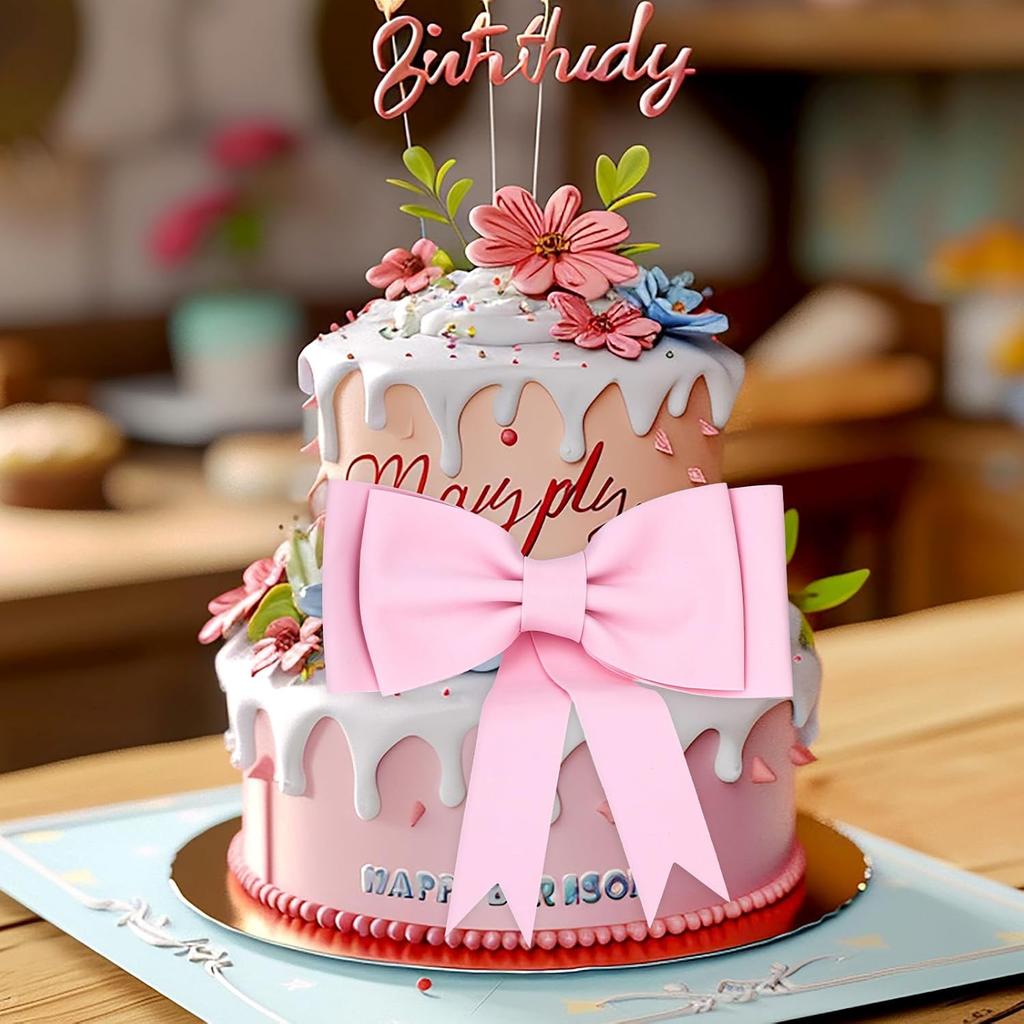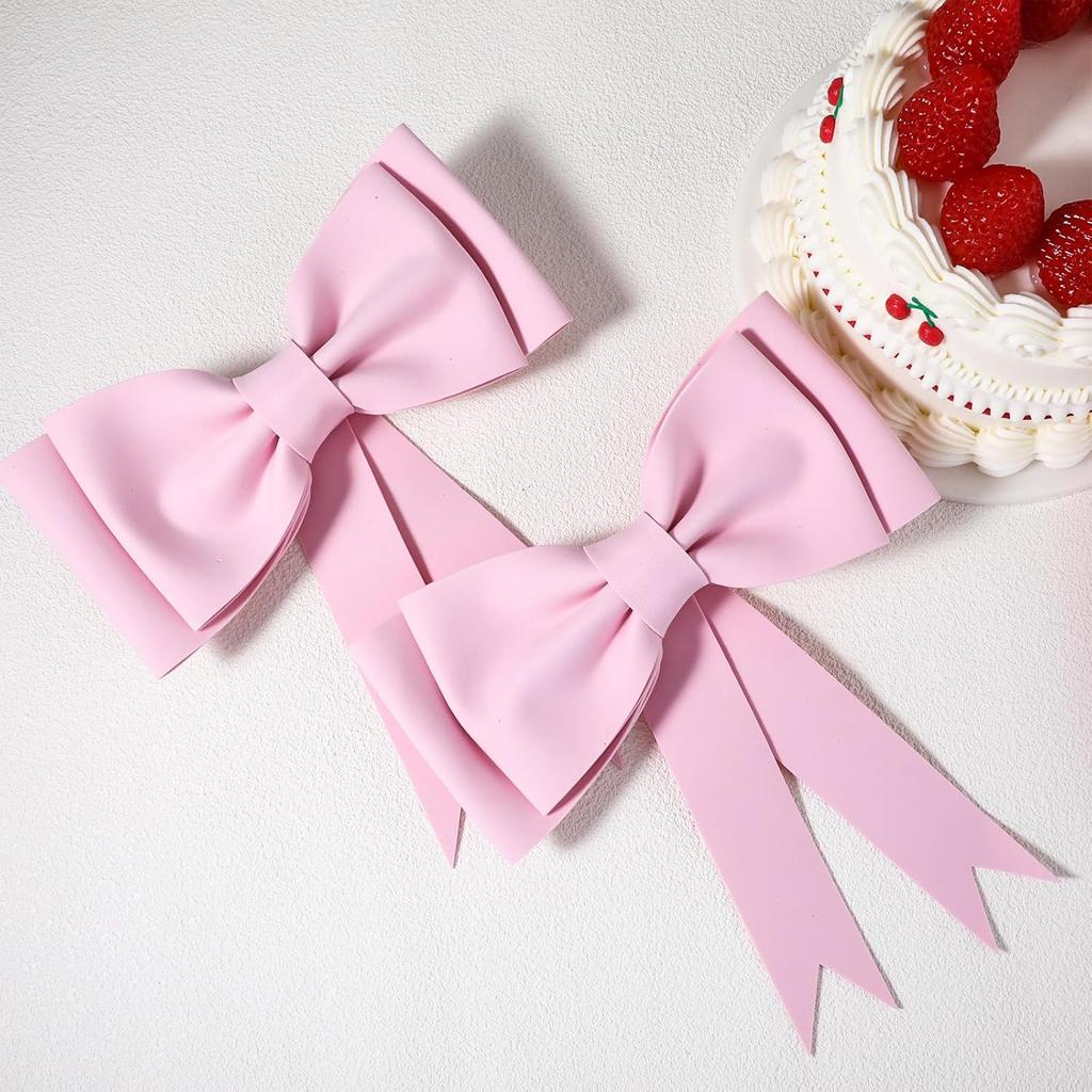 2 Pcs Pink Bow Cake Toppers for Girls Birthday Oversized Bow Cake Topper Decoration EVA Pink Bows Party Decorations