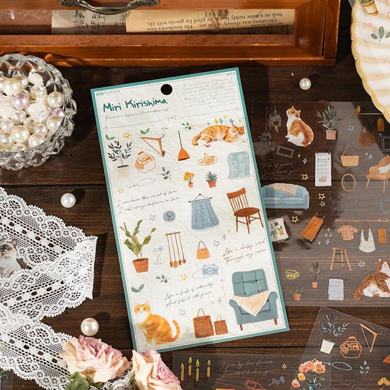 Милые Эстетичные Наклейки с Котиками и Цветами для Скрапбукинга, Декор для Планера в Стиле INS, DIY Материалы для Джанк Журналинга