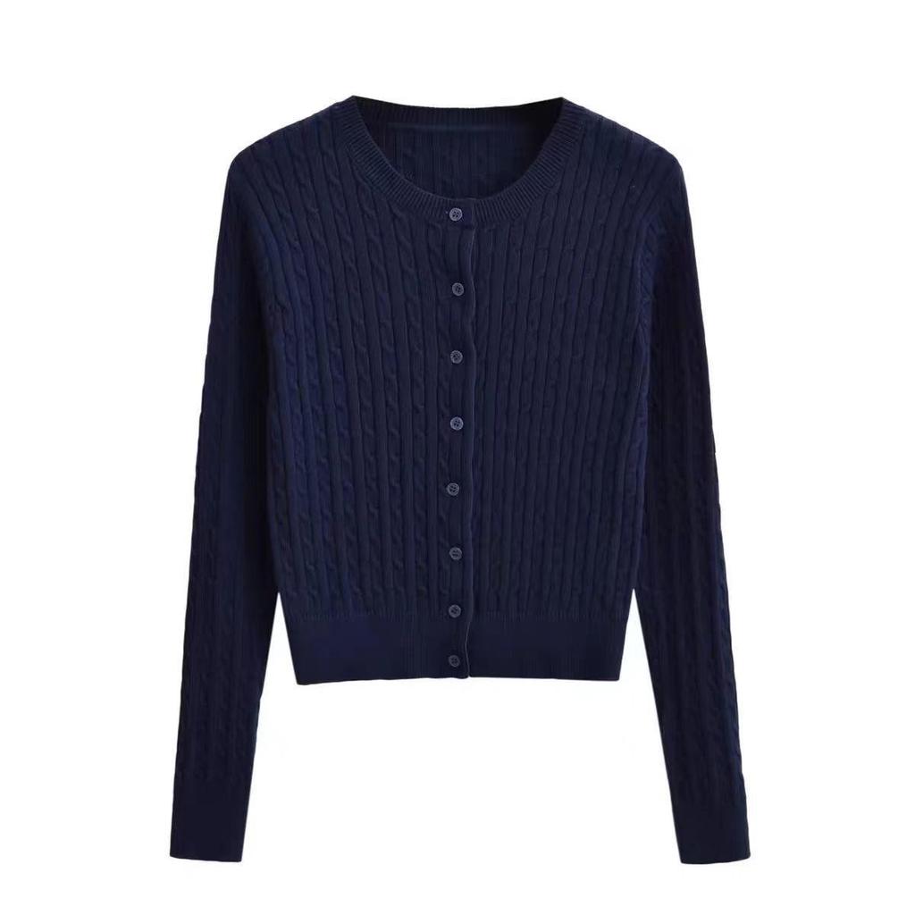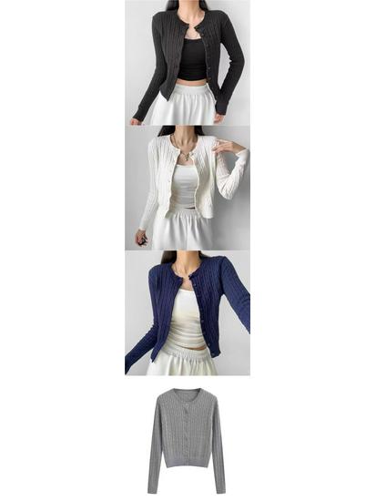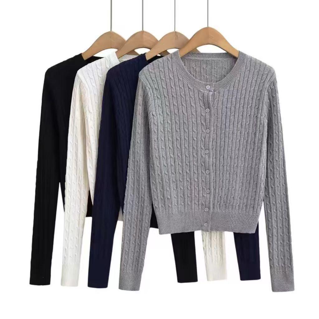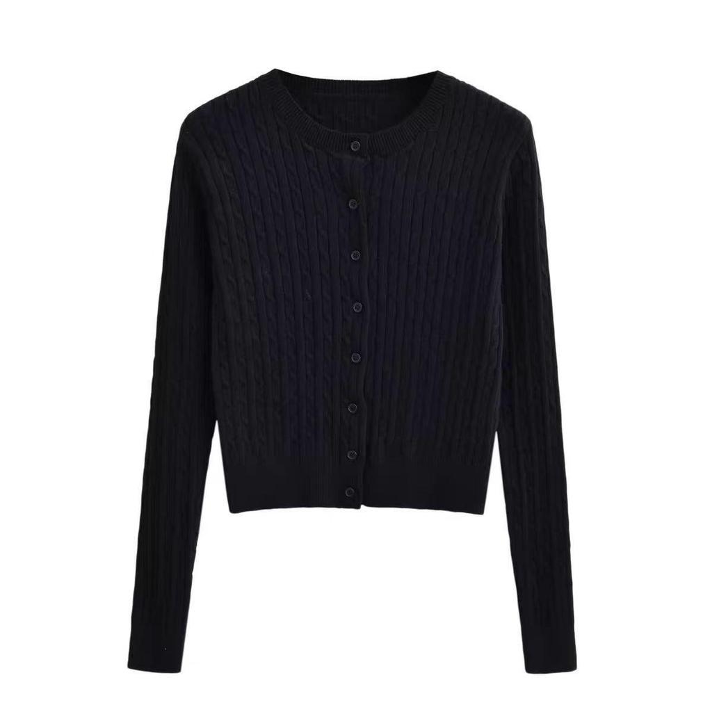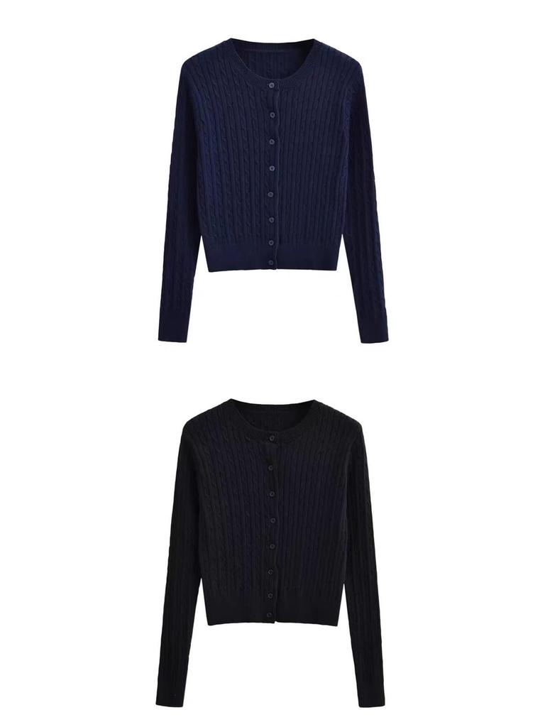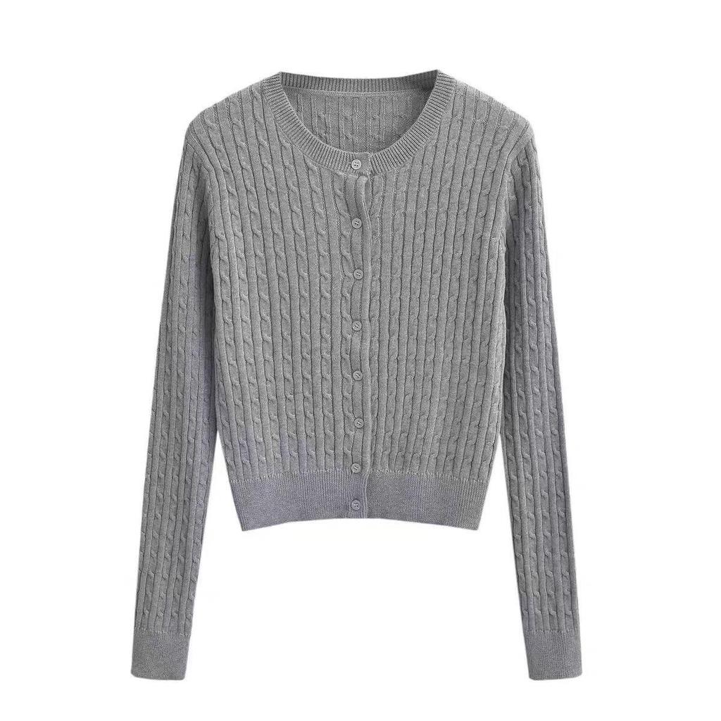 Женский кардиган с круглой горловиной и вязаным узором «косы» - Осенне-зимняя свободная верхняя одежда с длинным рукавом