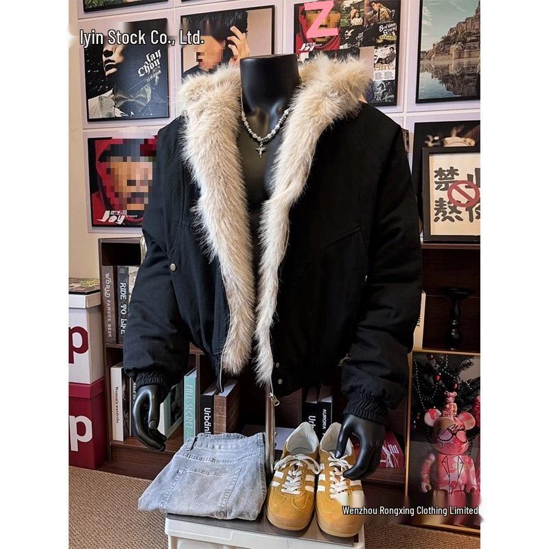 Мужская хлопковая куртка CleanFit в стиле ретро с меховым воротником и капюшоном - Теплое зимнее короткое пальто 'Золотой орел'