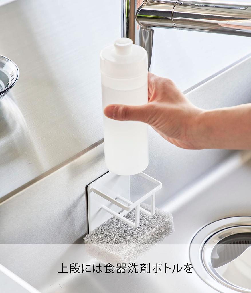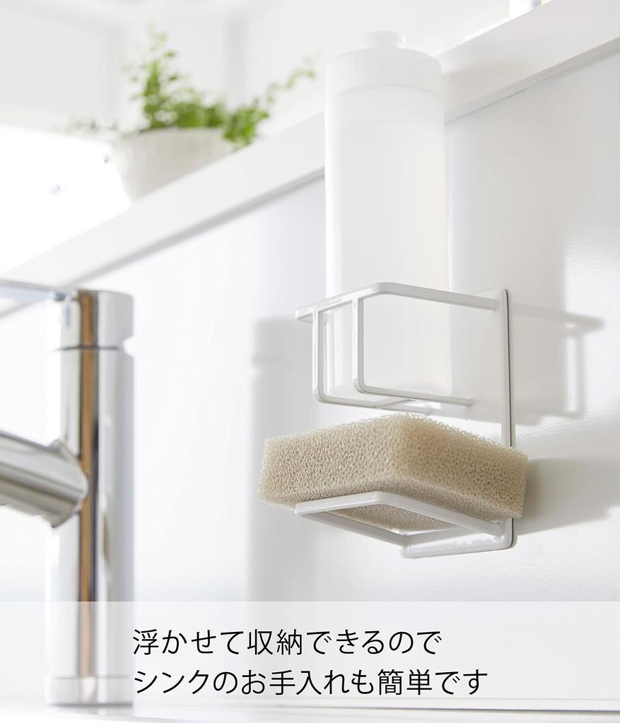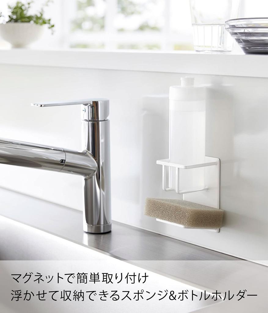 Yamazaki Tower Magnetic Sponge Bottle x x Sponge Floating 3767 & Holder, White, Approx. W7.9 D6.7 H11.5cm, Rack, Storage,