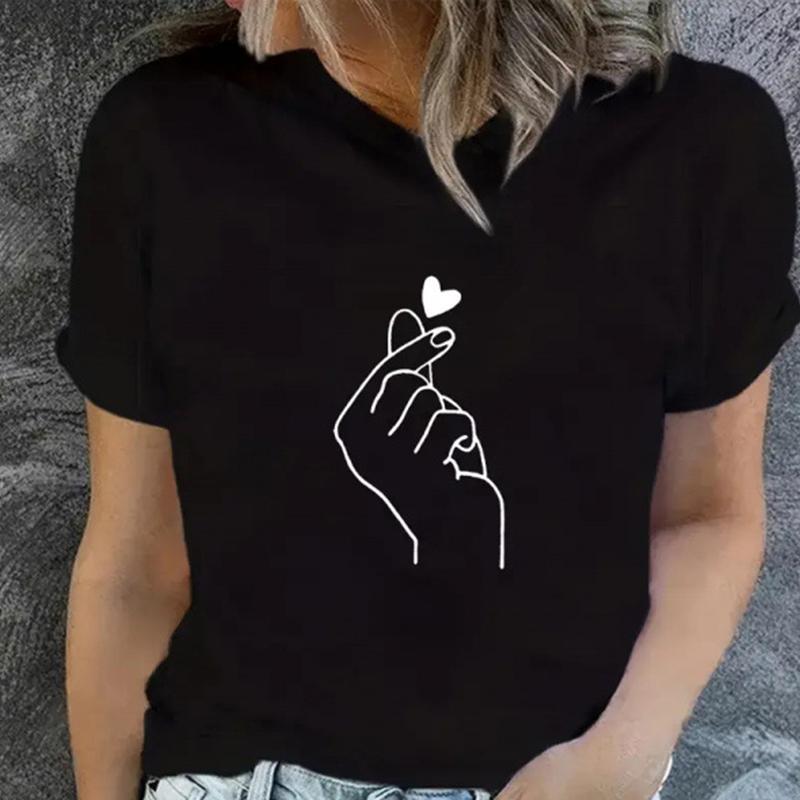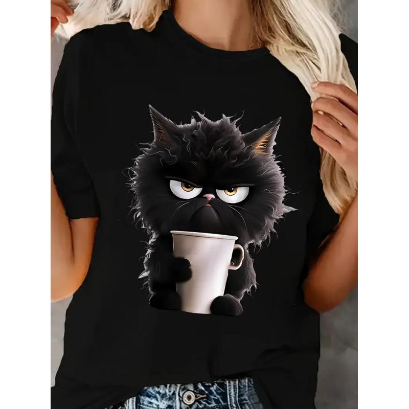 Женская летняя хлопковая футболка оверсайз с круглым вырезом и принтом - Модный топ с коротким рукавом
