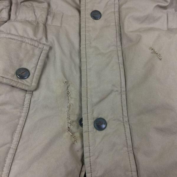 Это бывший в употреблении товар, поэтому на воротнике и в других местах есть признаки износа и пятна.. Спереди также есть следы ремонта. Кажется, в комплекте был капюшон, но он не входит.. Мы рекомендуем химчистку.. (См. изображения.)