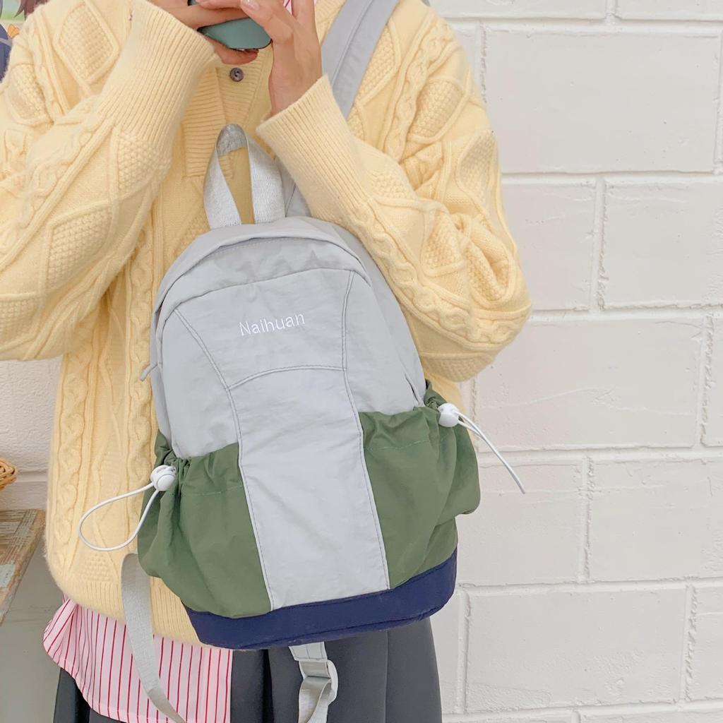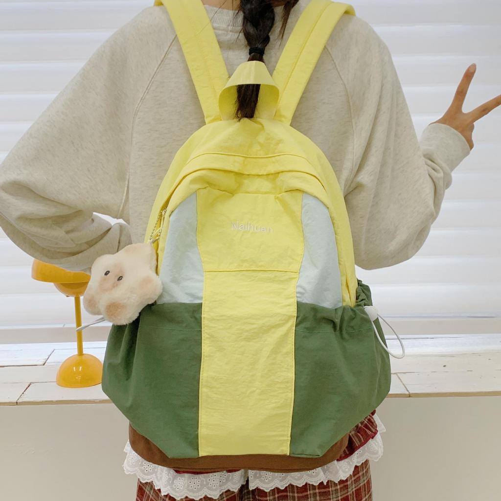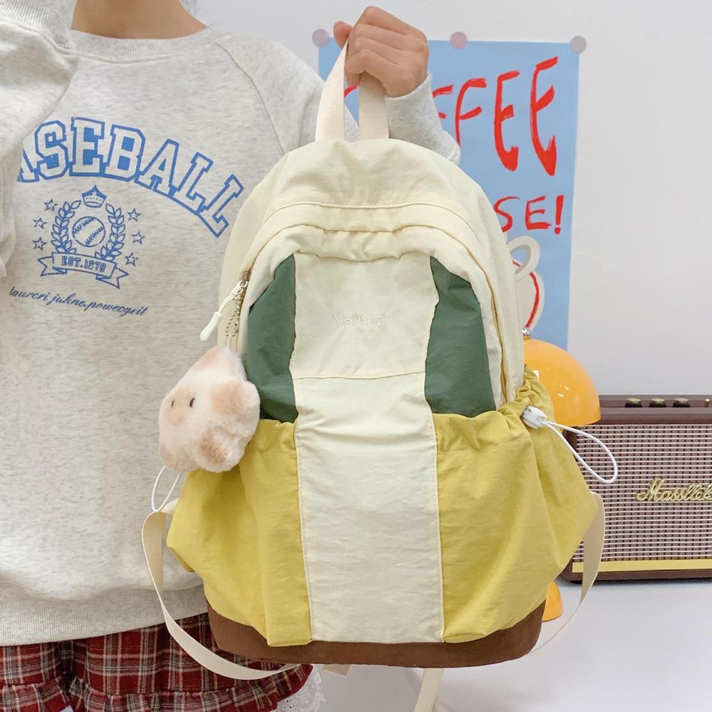 Осенний водонепроницаемый нейлоновый рюкзак: Универсальный дизайн в стиле колор-блок для студентов и прогулок