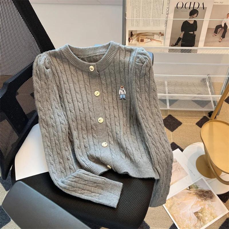 2KWEIRD Осень Новая Вязаная Куртка-Свитер Вышивка Женская Короткая Шерстяная Верхняя Одежда Приталенный Вязаный Кардиган Кашемир Сладкий Трикотаж