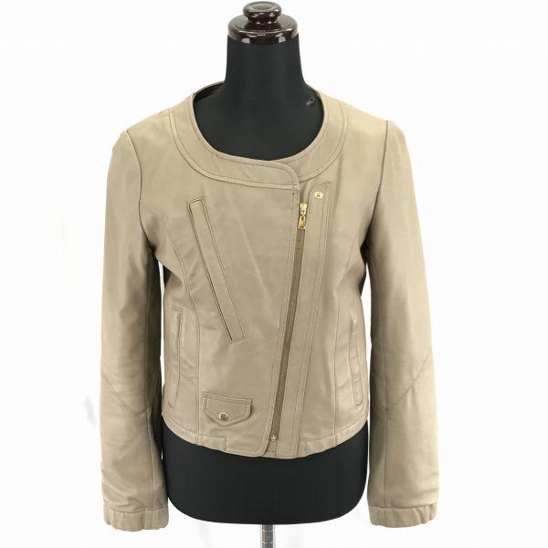 araara/araara ★ Genuine Leather/Lambskin/Rider's Leather Jacket [Size 1/S/Beige] Full Zip/Collarless/Short Length/Zip Pockets ◆ BC89L