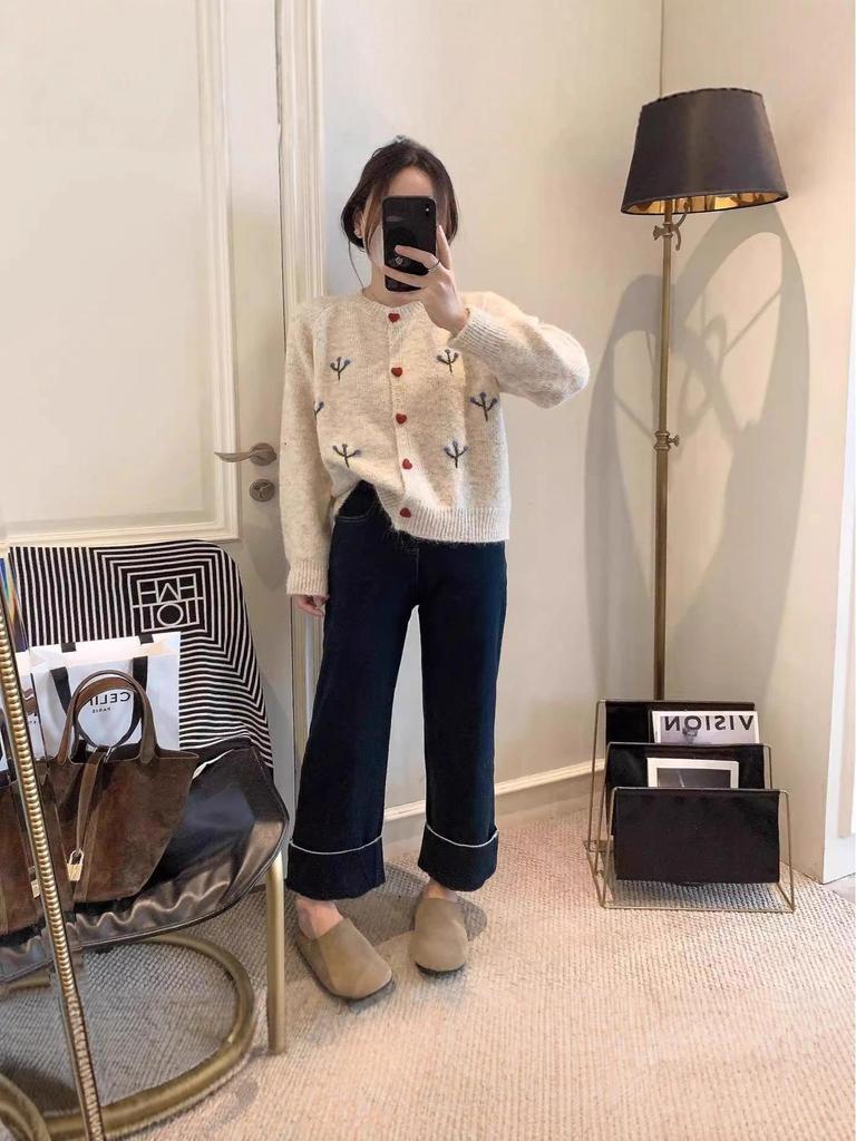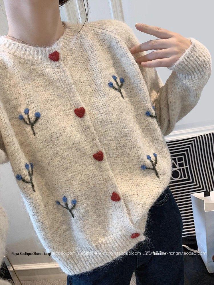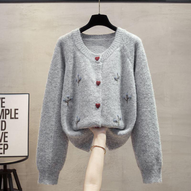 Изысканный вязаный кардиган с пуговицами в виде сердечек в стиле ретро для женщин