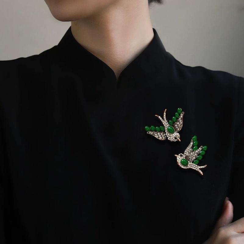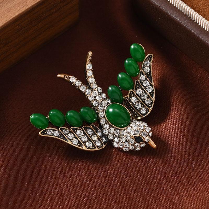 Броши Изумрудная Летающая Ласточка Для Женщин Мужчин Ретро Цвет Металл Птица Лацкан Застежка Значки Простые Животные Ювелирные Аксессуары