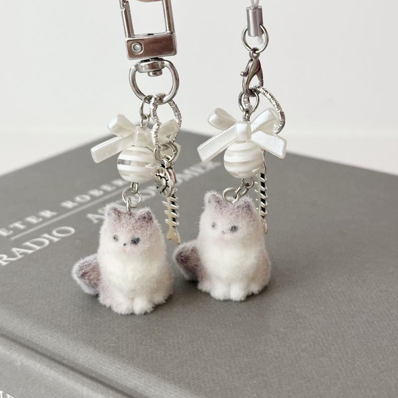 Мультяшный флокированный кулон в виде кошек и собак, брелок для ключей, кольцо для ключей для женщин, девушек, милый кулон для сумки, кавайная цепочка для мобильного телефона, подарки
