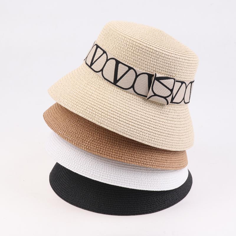 Трендовые буквы Плетеная рыбацкая женская Простая соломенная шляпа Солнцезащитные шляпы Для путешествий на открытом воздухе Пляжная панама Шляпы-ведра для женщин