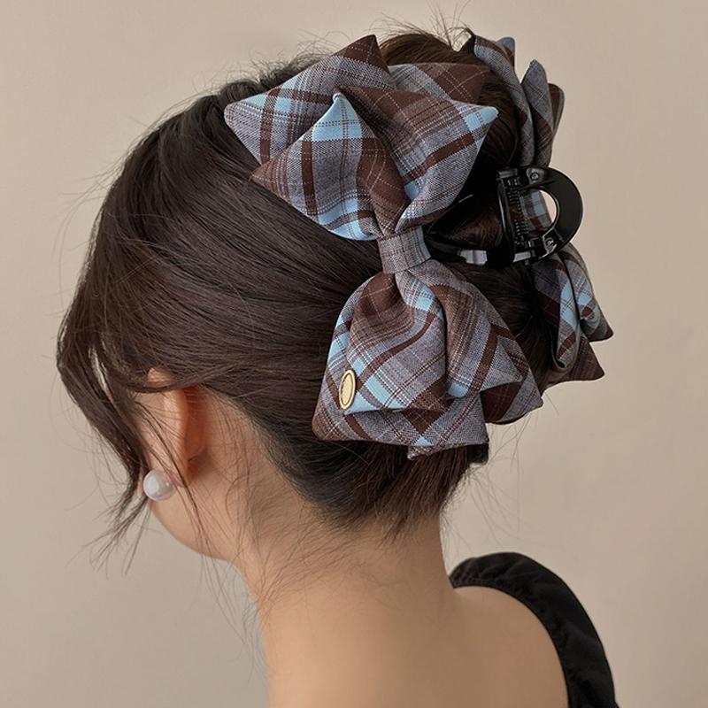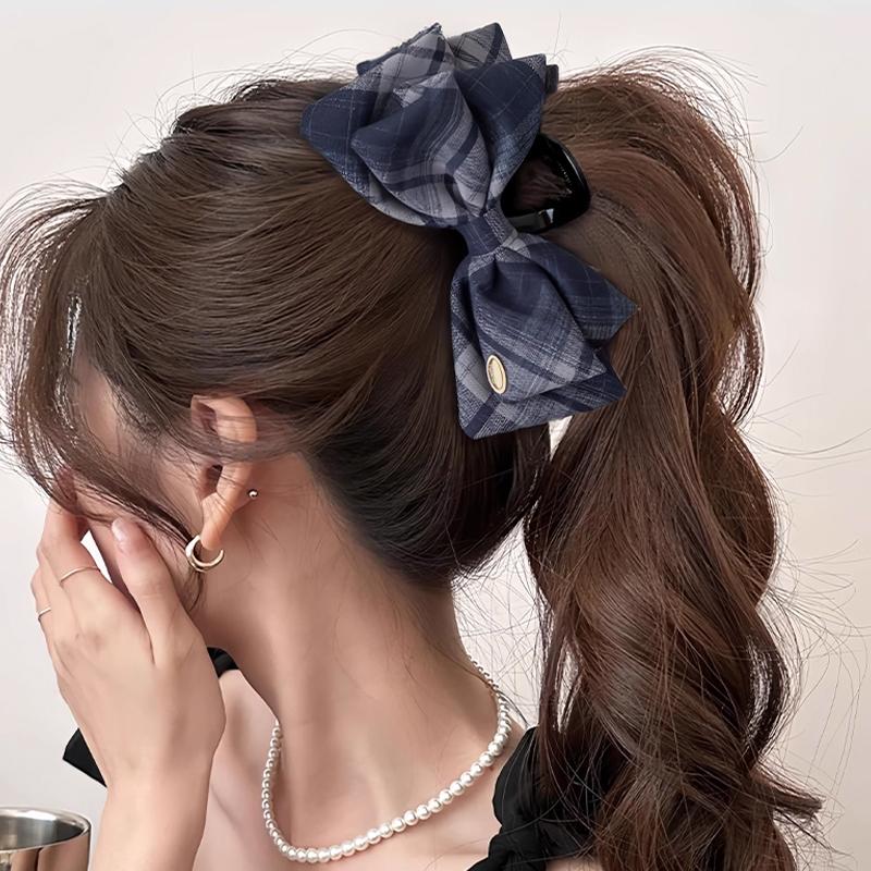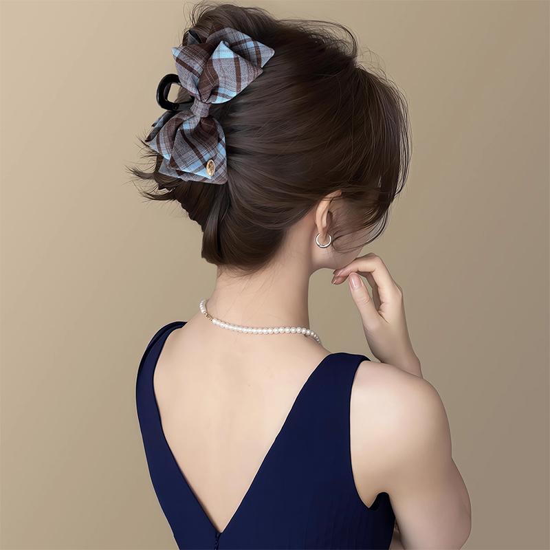Ретро клетка зажим-акула корейский темперамент бант заколка для хвостика аксессуары для волос