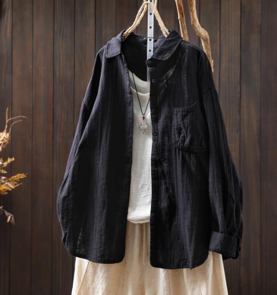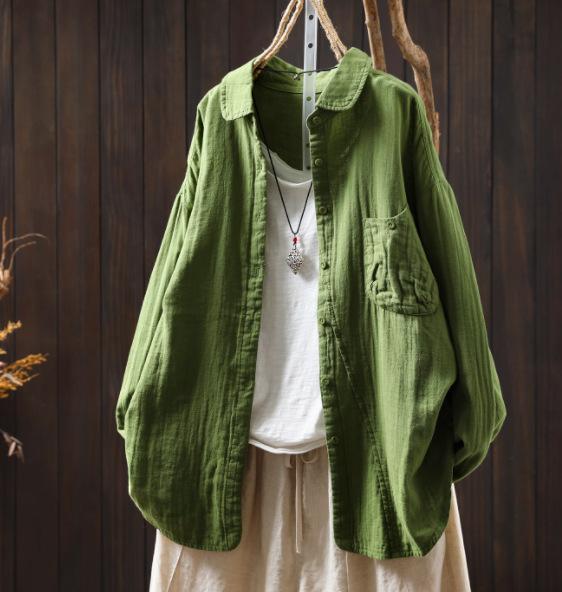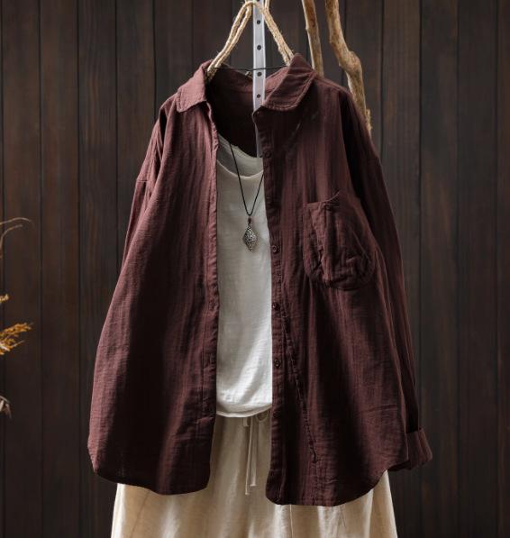 Johnature Женские винтажные рубашки топы с отложным воротником пэчворк карманы блузки осенние однотонные рубашки