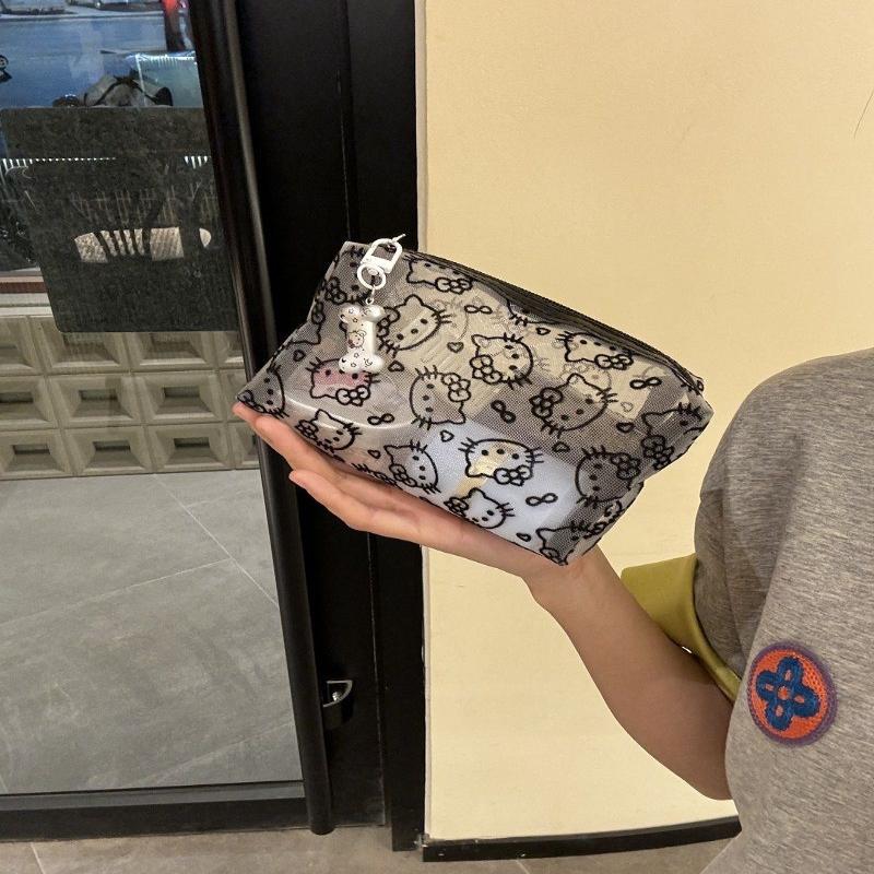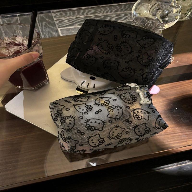 Черная сетчатая косметичка Hello Kitty, портативный косметический органайзер, прочный органайзер для путешествий