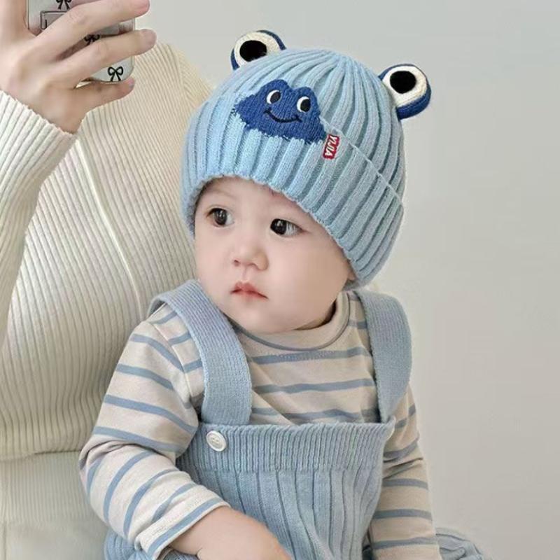 Детская шерстяная шапка Милая шапка с защитой ушей в виде лягушки с большими глазами Зимняя утолщенная теплая вязаная шапка Подарок для детей