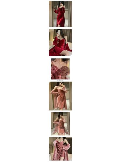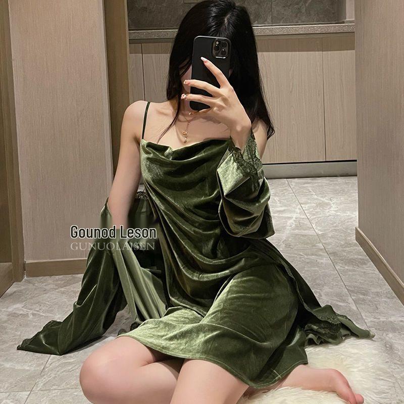 Пижамный комплект из золотистого бархатного кружева для женщин - Коллекция Осень/Зима 2025