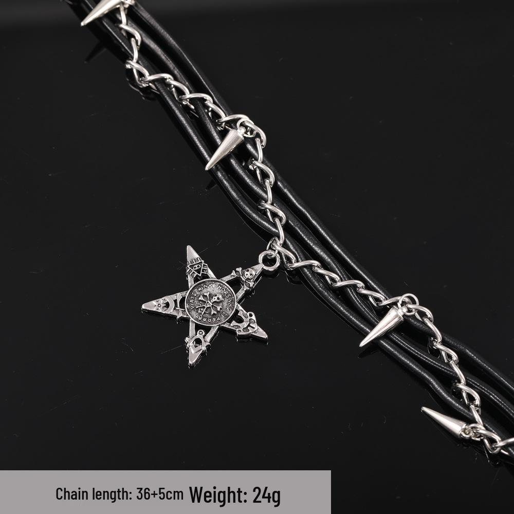 Кожаный Чокер с Пентаграммой в Темном Стиле - Панк Цепочка на Ключицы с Заклепками для Крутых Пар и Хип-Хоп Трендовых