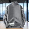 Мужской свитер крупной вязки с высоким воротником - Модный повседневный топ с длинным рукавом однотонной расцветки