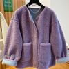 Женское пальто из искусственной овчины большого размера - Осенне-зимний свободный, повседневный, утолщенный топ