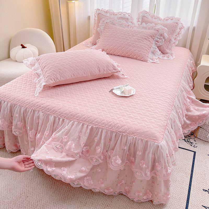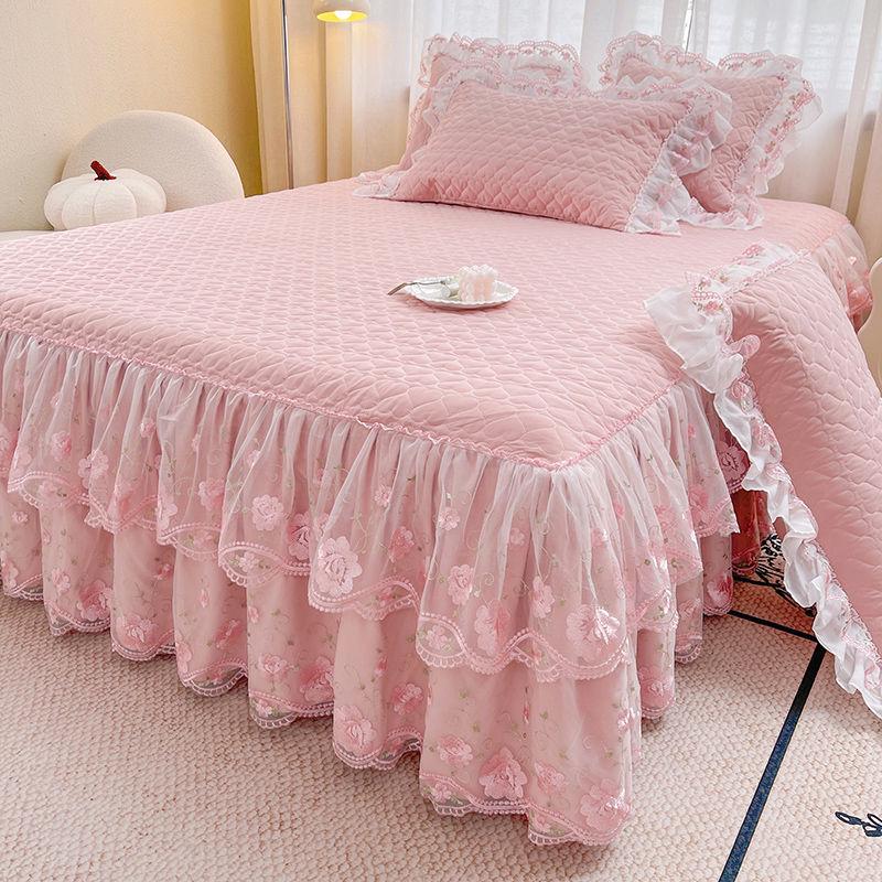 Кружевной комплект юбки и простыни для кровати в корейском стиле - 3 предмета, стеганый пылезащитный чехол для кровати с полной оборкой