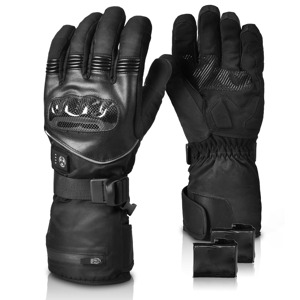 Heated Motorcycle Gloves for Made with Japanese Carbon Rapid 5000mAh Battery Level Includes Laundry 5 Temperature Smartphone and Cold Heated Gloves
