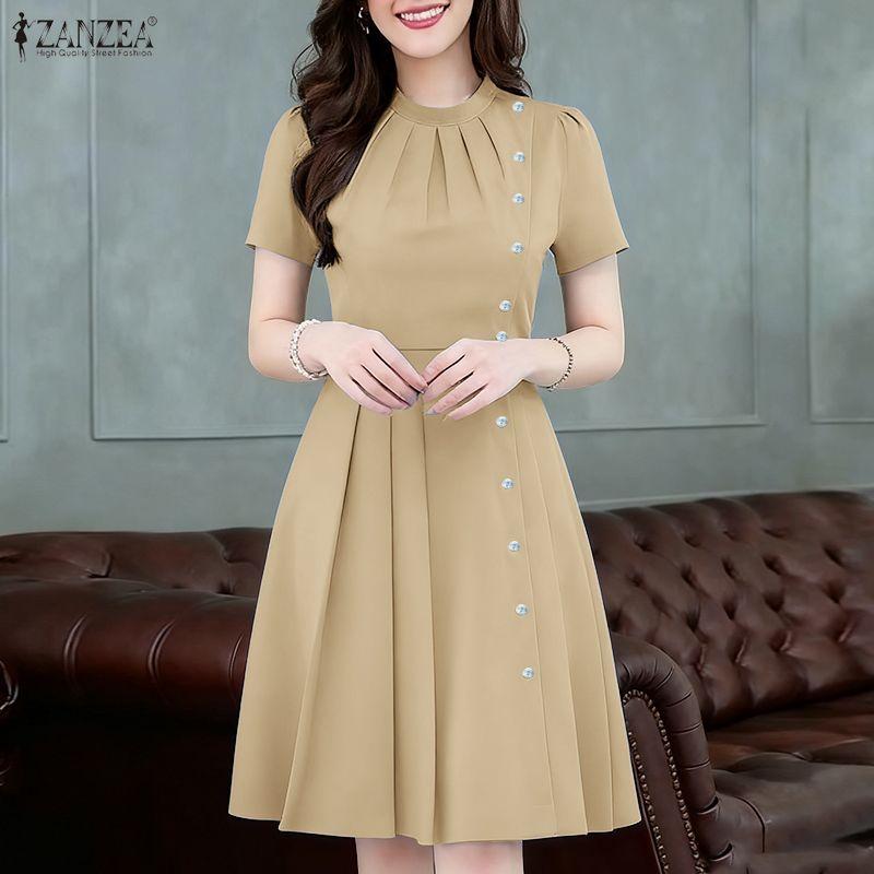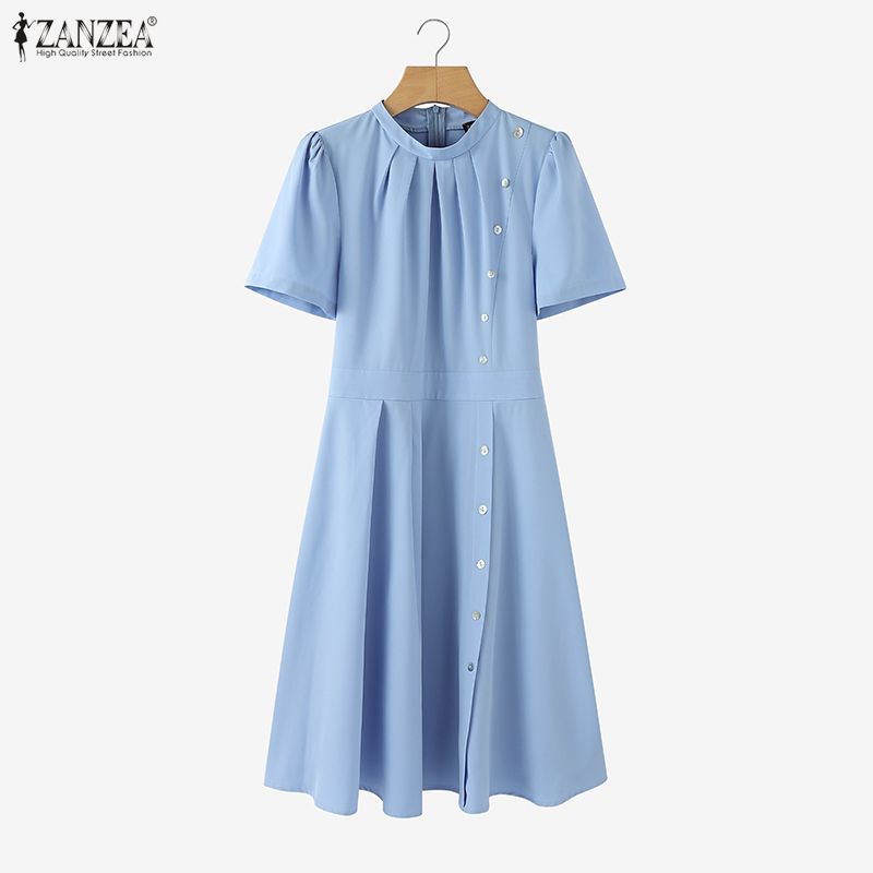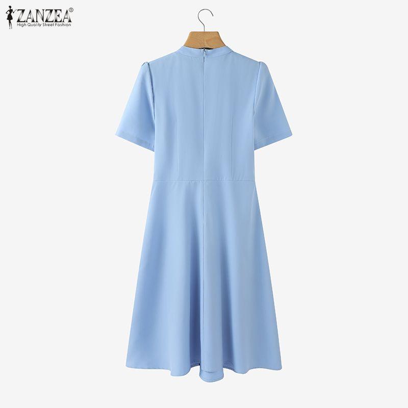 ZANZEA Женское повседневное летнее платье с круглым вырезом и коротким рукавом