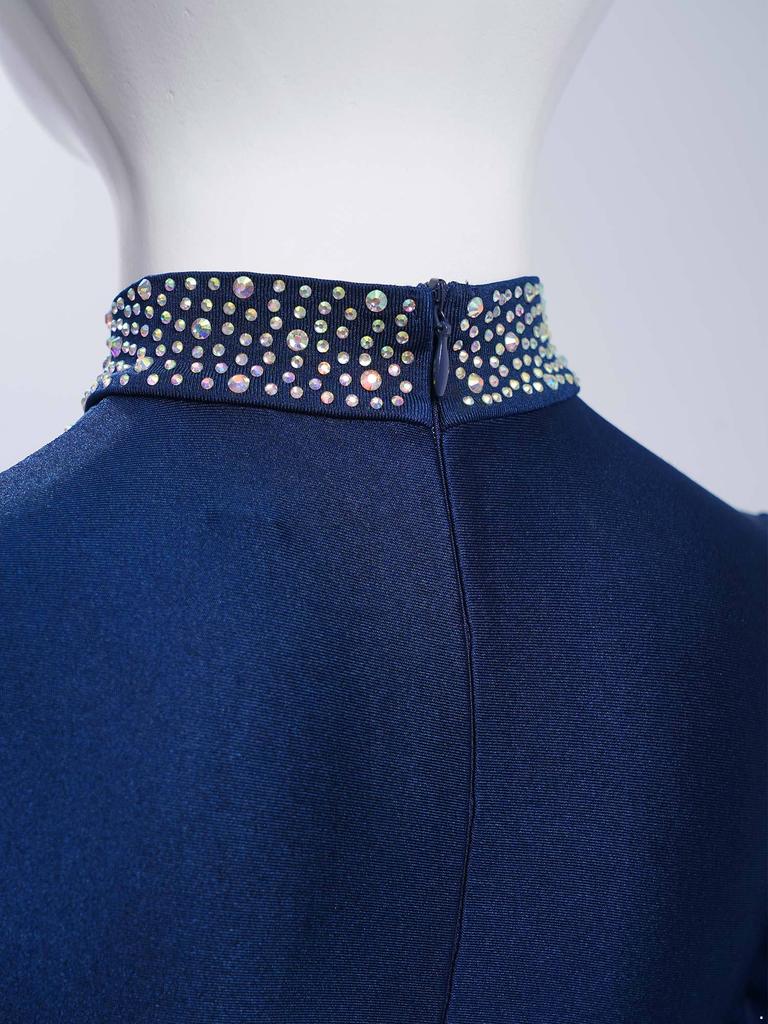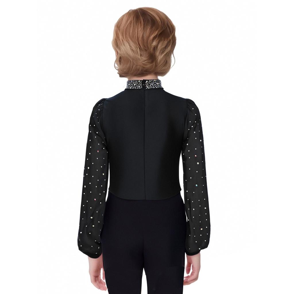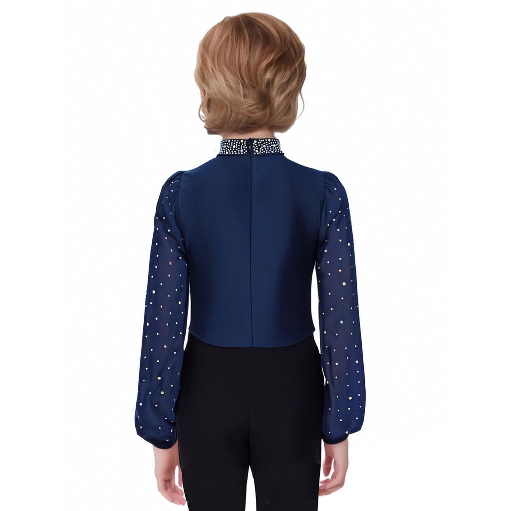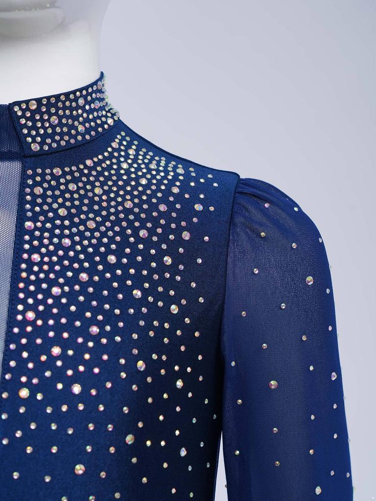 Комбинезон для фигурного катания для мальчиков, с длинным рукавом, с воротником-стойкой, украшенный стразами, с застежкой-кнопкой в области ластовицы, с молнией сзади