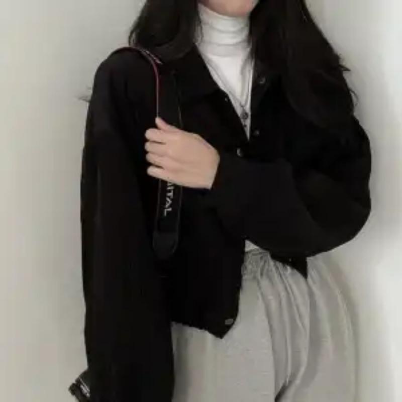 Корейский шик Новый ретро простой лацкан короткий на кулиске длинный рукав топ вельветовая свободная куртка женская