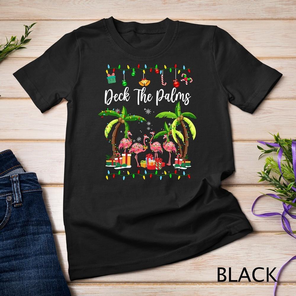 Deck The Palms Merry Flamingo Рождественская елка Xmas Унисекс Футболка