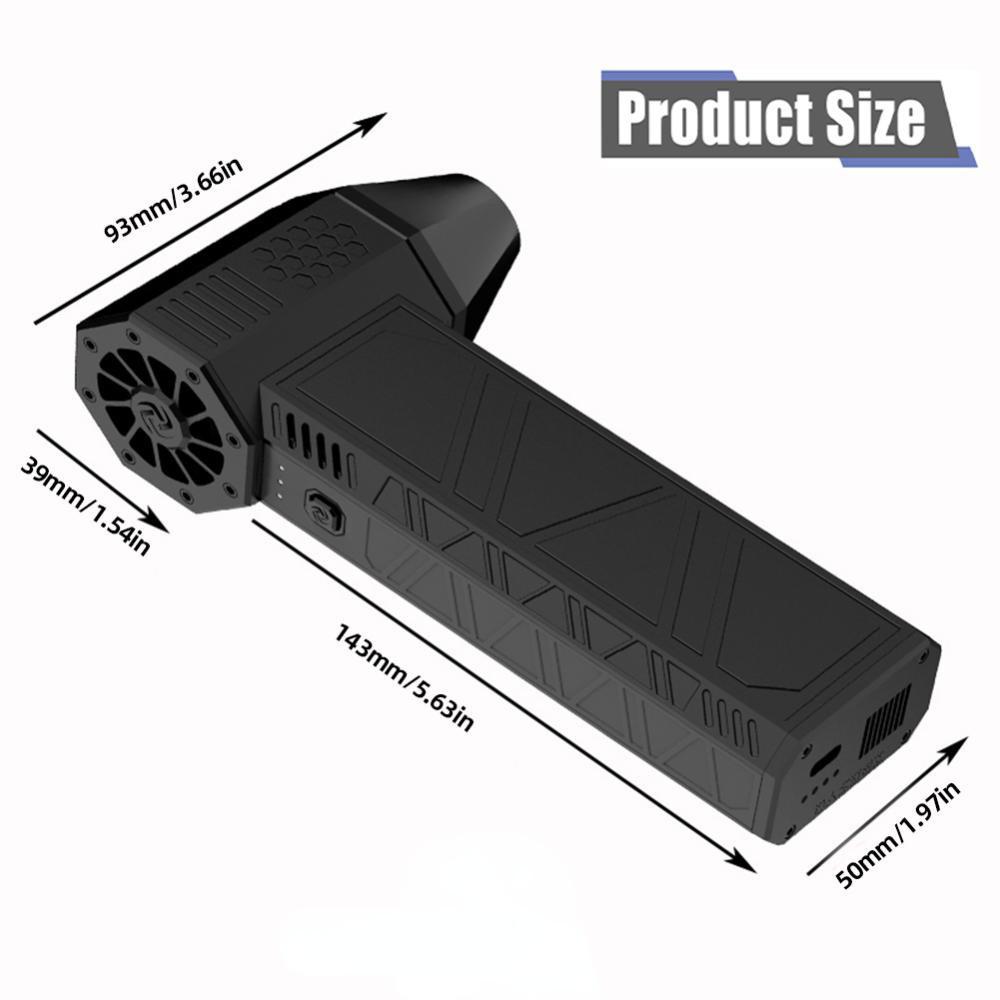 - Светодиодное освещение и зарядка типа C: Вентилятор со встроенными светодиодными шариками автоматически включается при включении, излучая красивое голубое свечение.. Мини-турбовентилятор также оснащен удобным зарядным интерфейсом Type-C, который поддерживает быструю зарядку PD/QC мощностью 15 Вт.