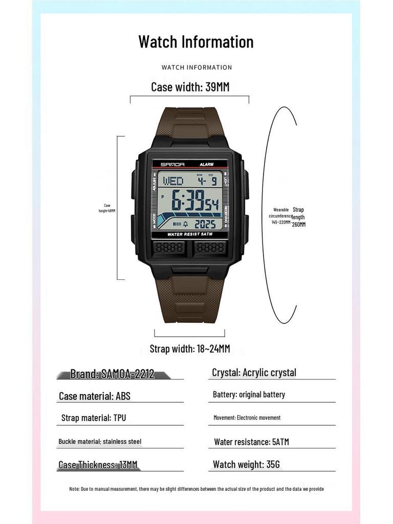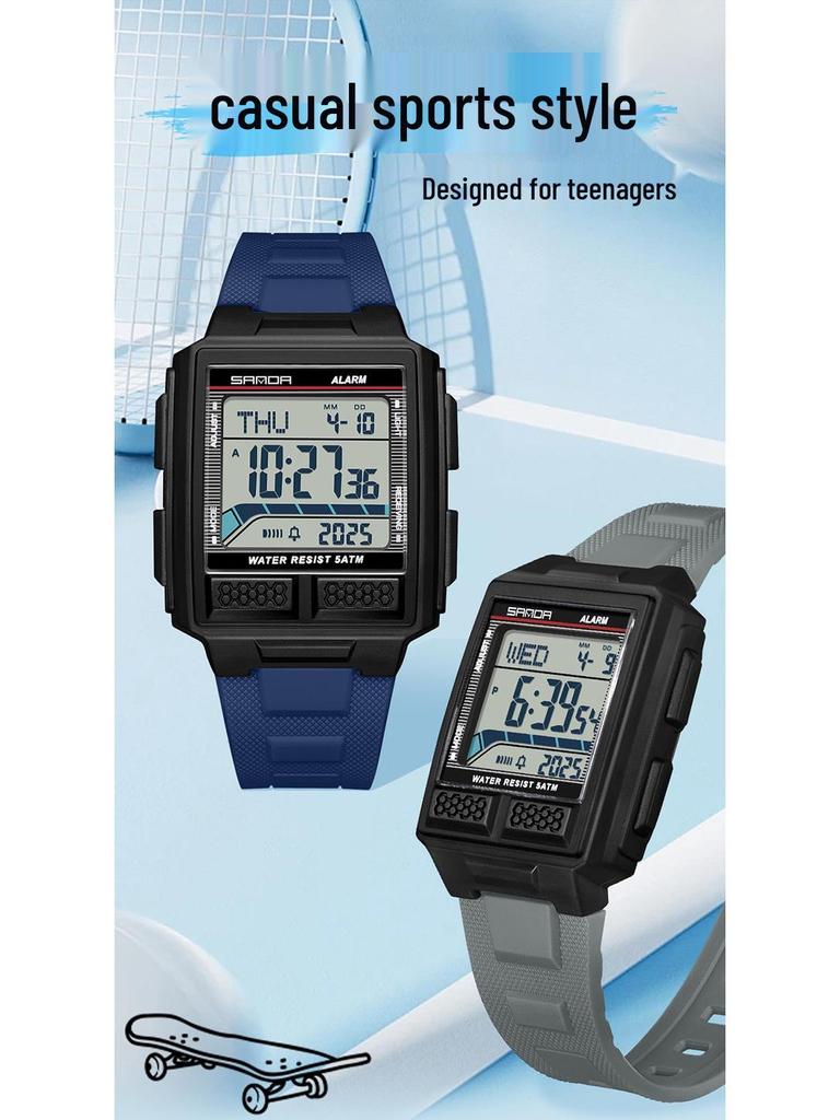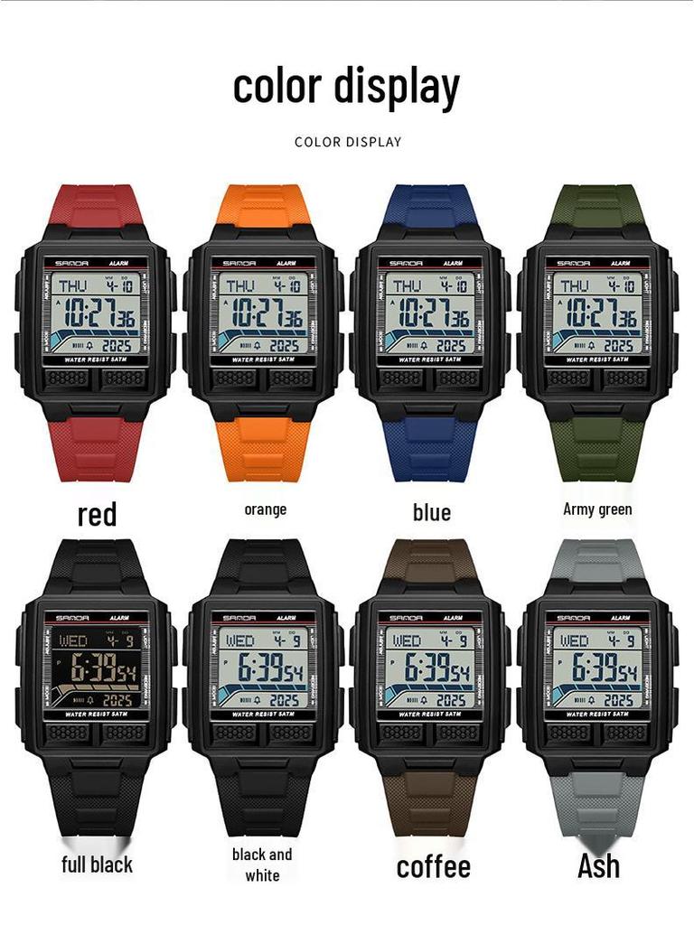 Sanda Мужские светящиеся многофункциональные водонепроницаемые наручные часы с большим экраном и таймером обратного отсчета