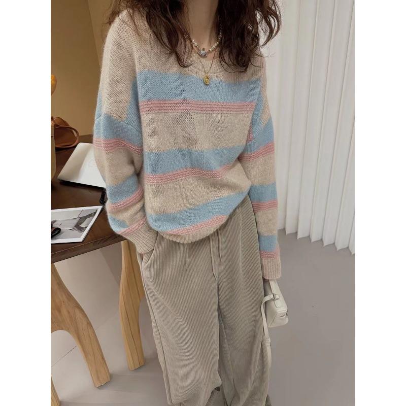 Осенне-зимние топы и свитера для женщин, свободная верхняя одежда, круглый вырез, цветные блоки, ретро, корейский стиль, универсальные