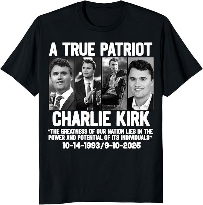 Футболка Чарли Кирка, Истинный Патриот 1993-2025 Покойся с миром Мемориальная футболка с американским флагом