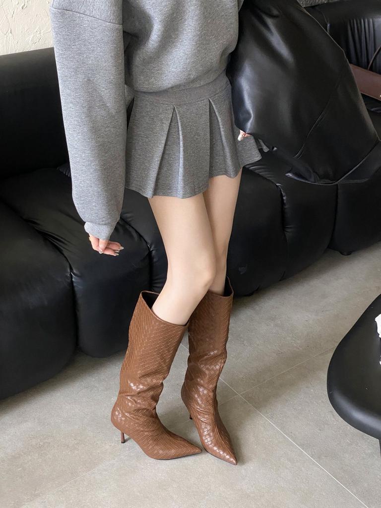 2025 European and American style woven surface pointed head thin temperament high heel boots