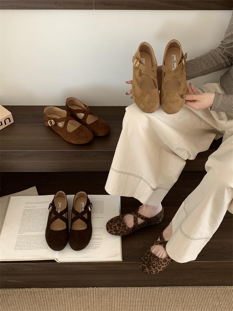 Туфли Мэри Джейн на плоской подошве женские туфли весна и осень 2025 новые нишевые с леопардовым принтом с перекрестной пряжкой с круглым носком ретро одинарные туфли