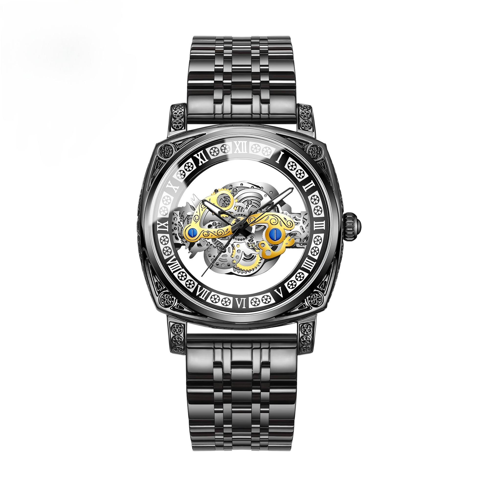 Мужские кварцевые часы Полностью автоматические Светящиеся Скелетоны Немеханические Наручные часы