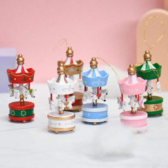 Универсальная декоративная деталь: Эти деревянные карусели с подвесной петлей для удобного размещения идеально подходят для украшения рождественских елок, кофеен, гостиных, офисных столов или спален, наполняя атмосферу очарованием и стилем.