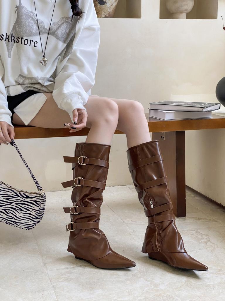 Осень 2025 новые остроносые клиновидные темпераментные тонкие французские модные сексуальные красивые женские ботильоны интернет-знаменитости