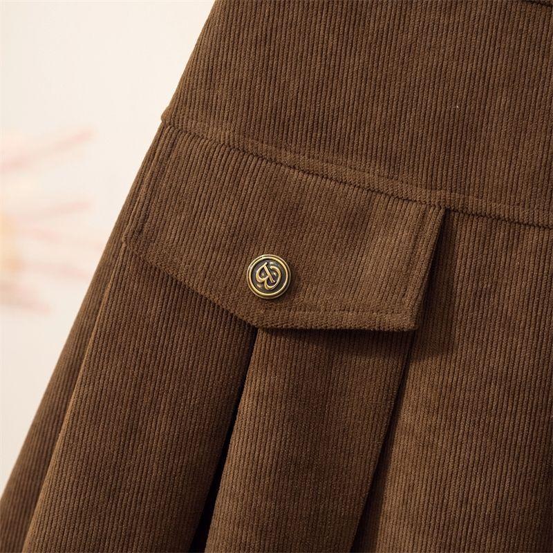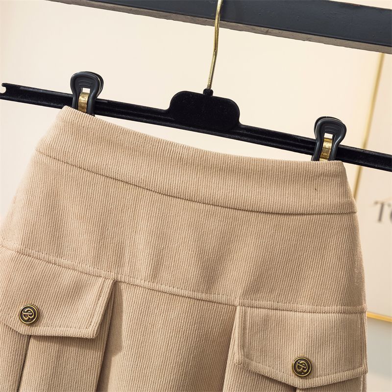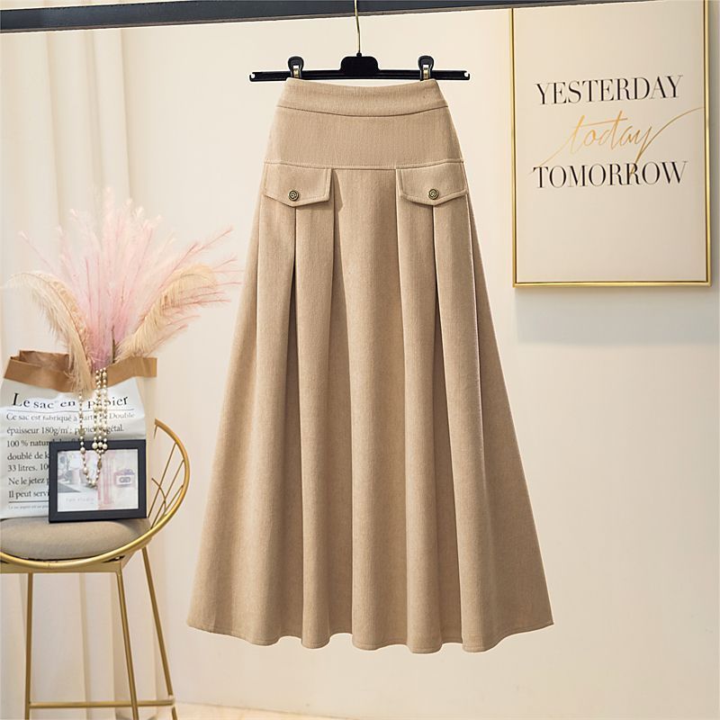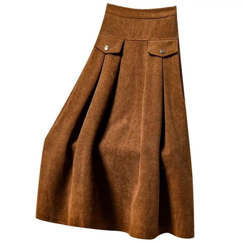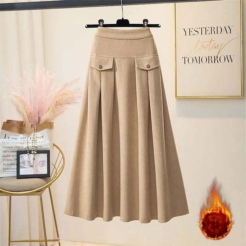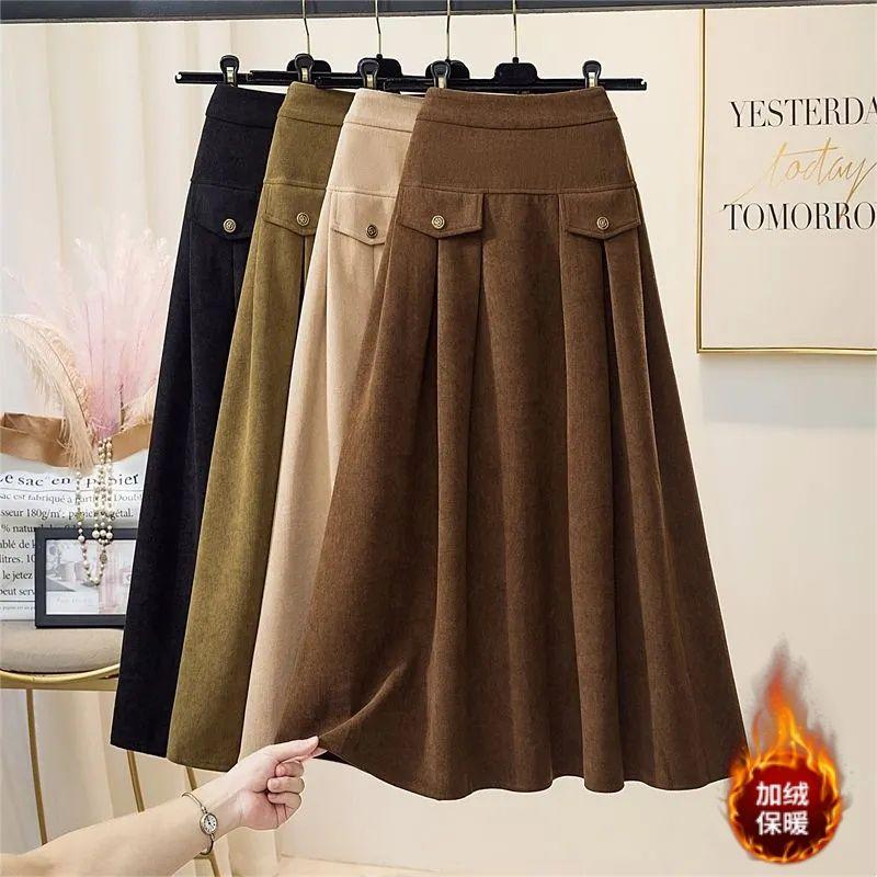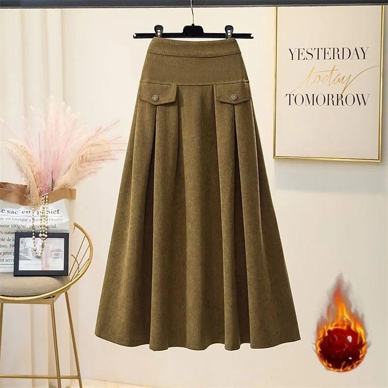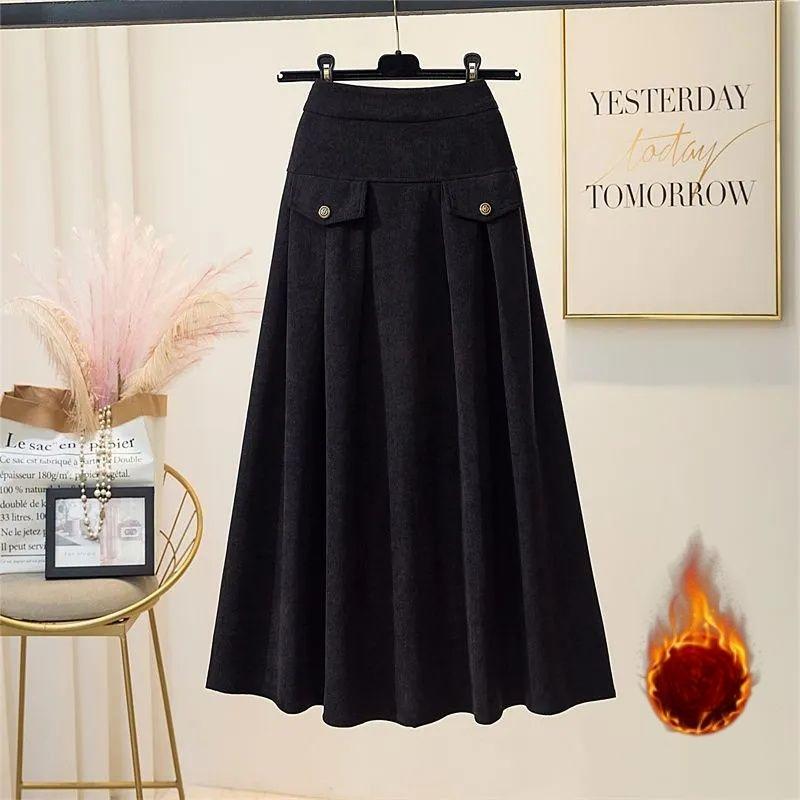 Женская юбка большого размера на флисовой подкладке Осень/Зима Эластичная талия А-силуэт Вельветовая длинная юбка С высокой талией Флокированная юбка