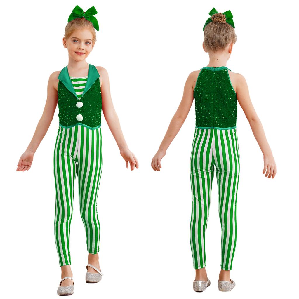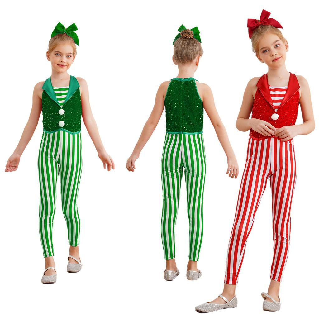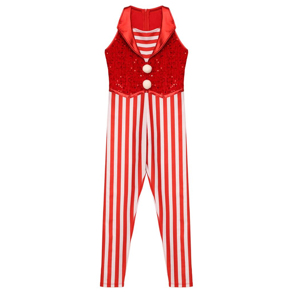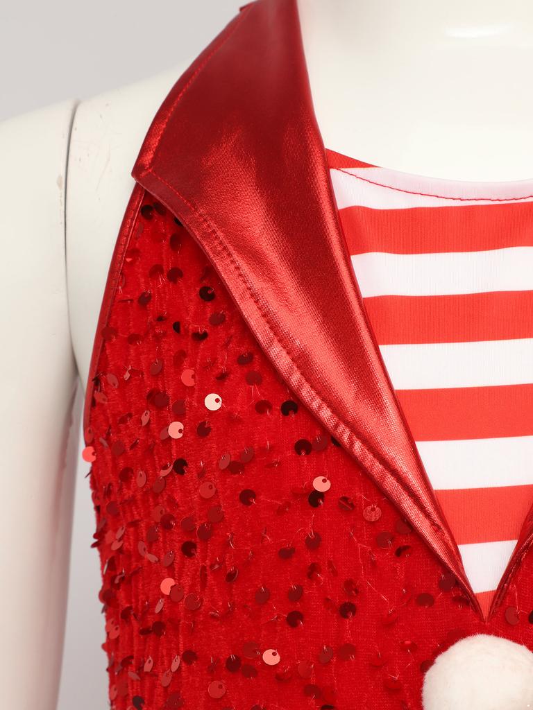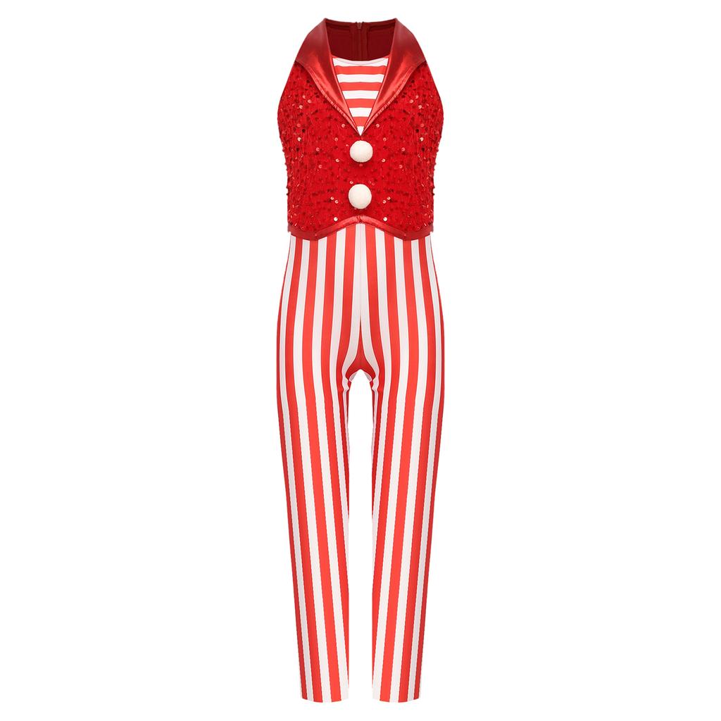 Рождественский костюм для девочек Боди без рукавов в полоску с пайетками Комбинезон для танцев и гимнастики Леденец