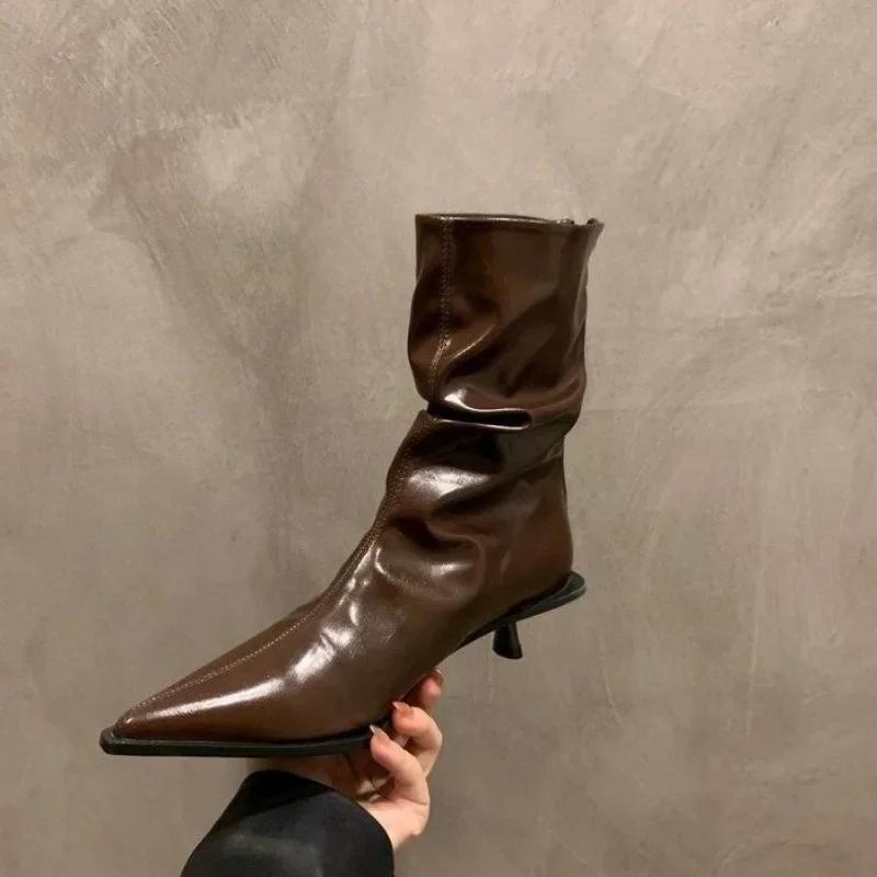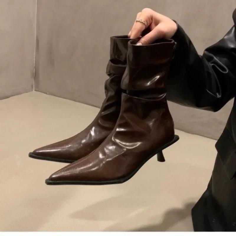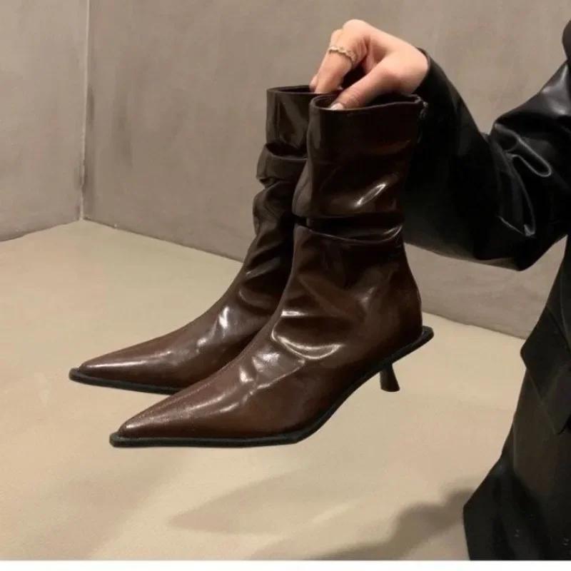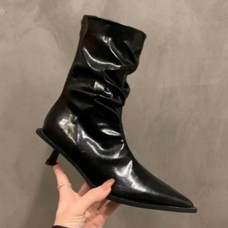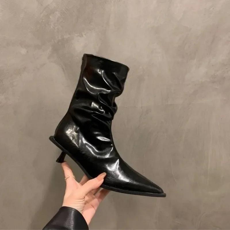 Женская обувь Высококачественные женские сапоги до середины икры Модные современные сапоги с застежкой-молнией сзади Женские сексуальные туфли с острым носком для женщин