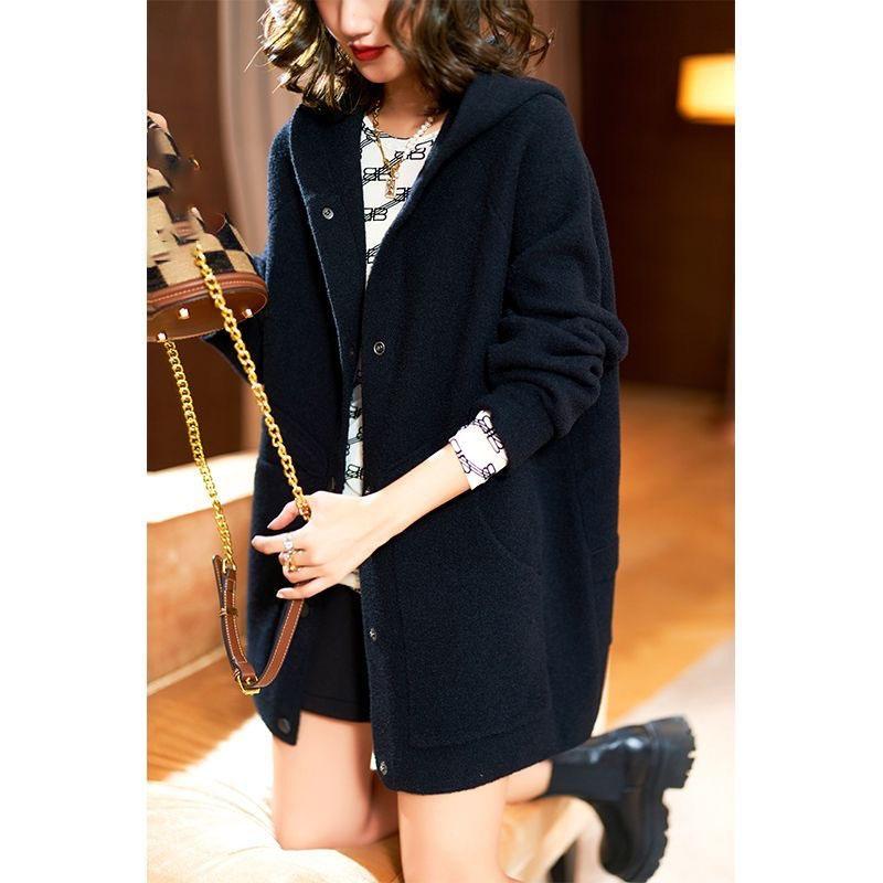 Женское двустороннее шерстяное пальто с капюшоном, средней длины, осенне-зимнее, модное, повседневное, свободного кроя, высочайшего качества, в корейском стиле, весенне-летнее