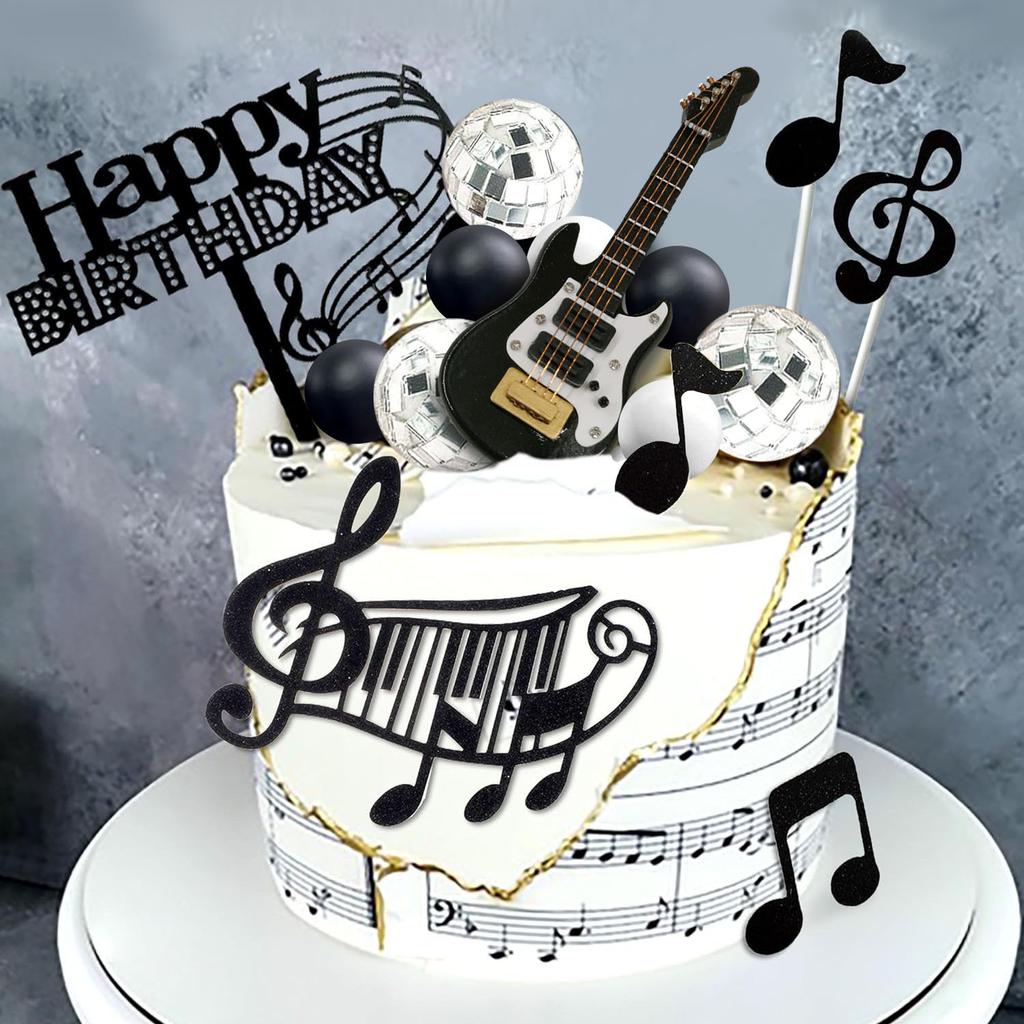 Rock Music Cake Topper Guitar Cake Toppers Music Notes Balls Cake Decorations for Musician Birthday Party Rock Theme Party