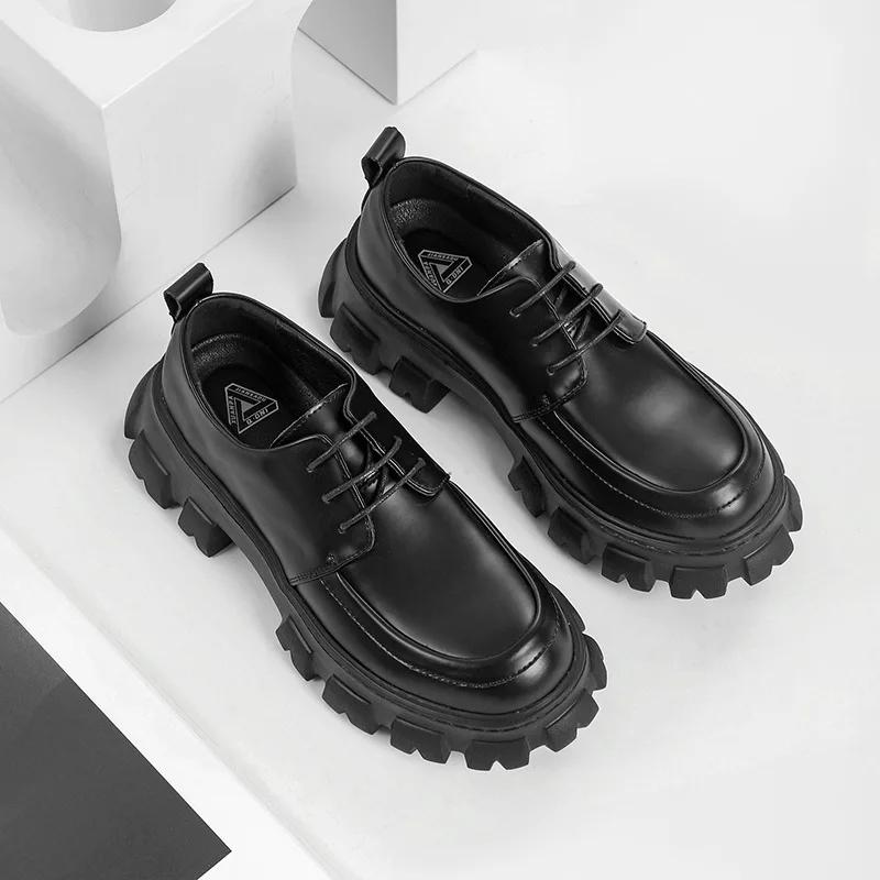 Мужская кожаная обувь Мужчины Новые массивные туфли на платформе Ретро рабочая обувь Весна Осень Дерби обувь Низкий верх Мужские повседневные лоферы