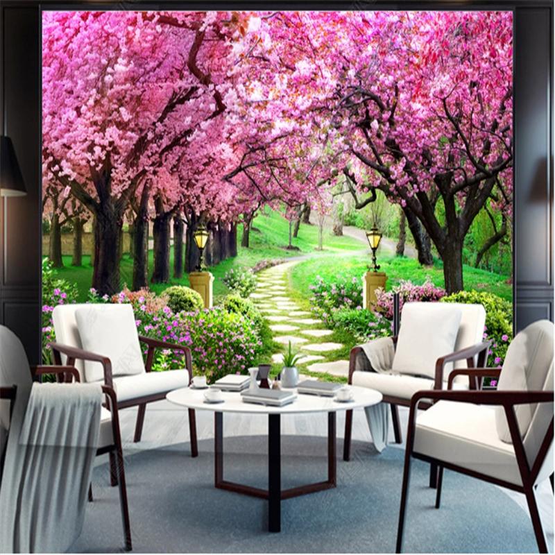 Вишневый лес фреска садовая дорожка пейзажные обои для гостиной ТВ фон настенная бумага домашний декор