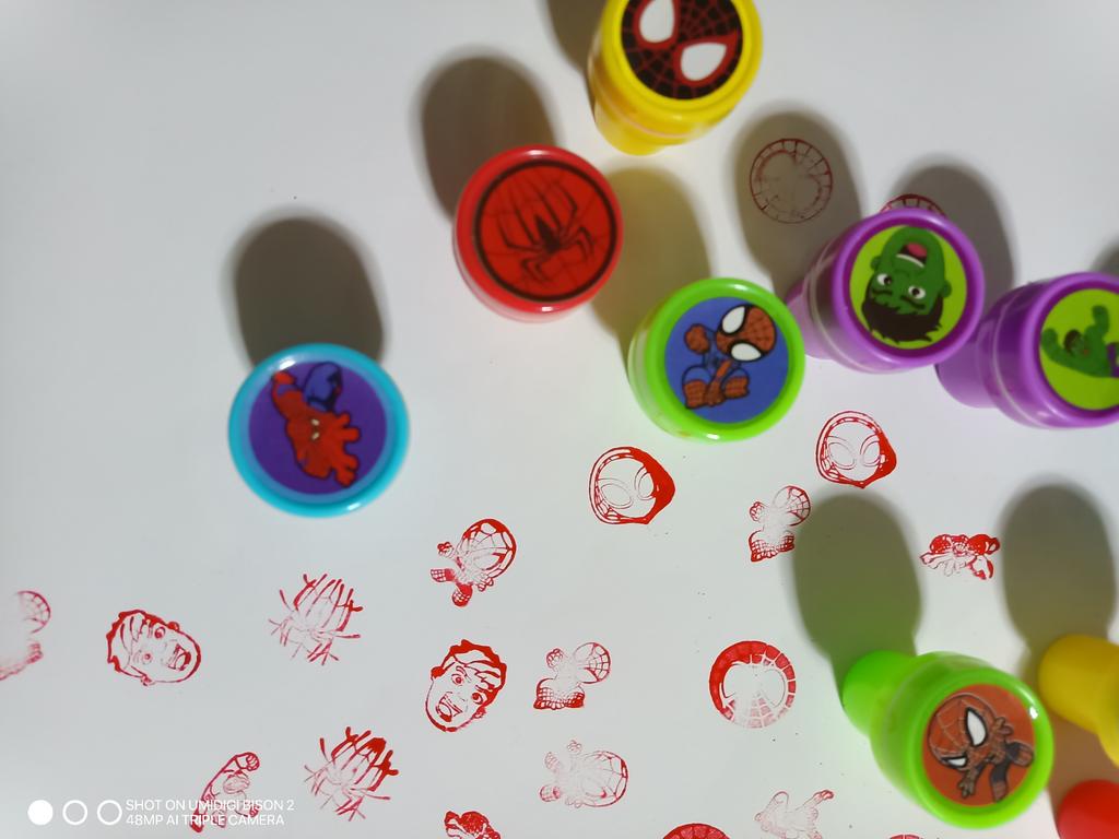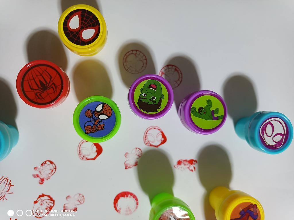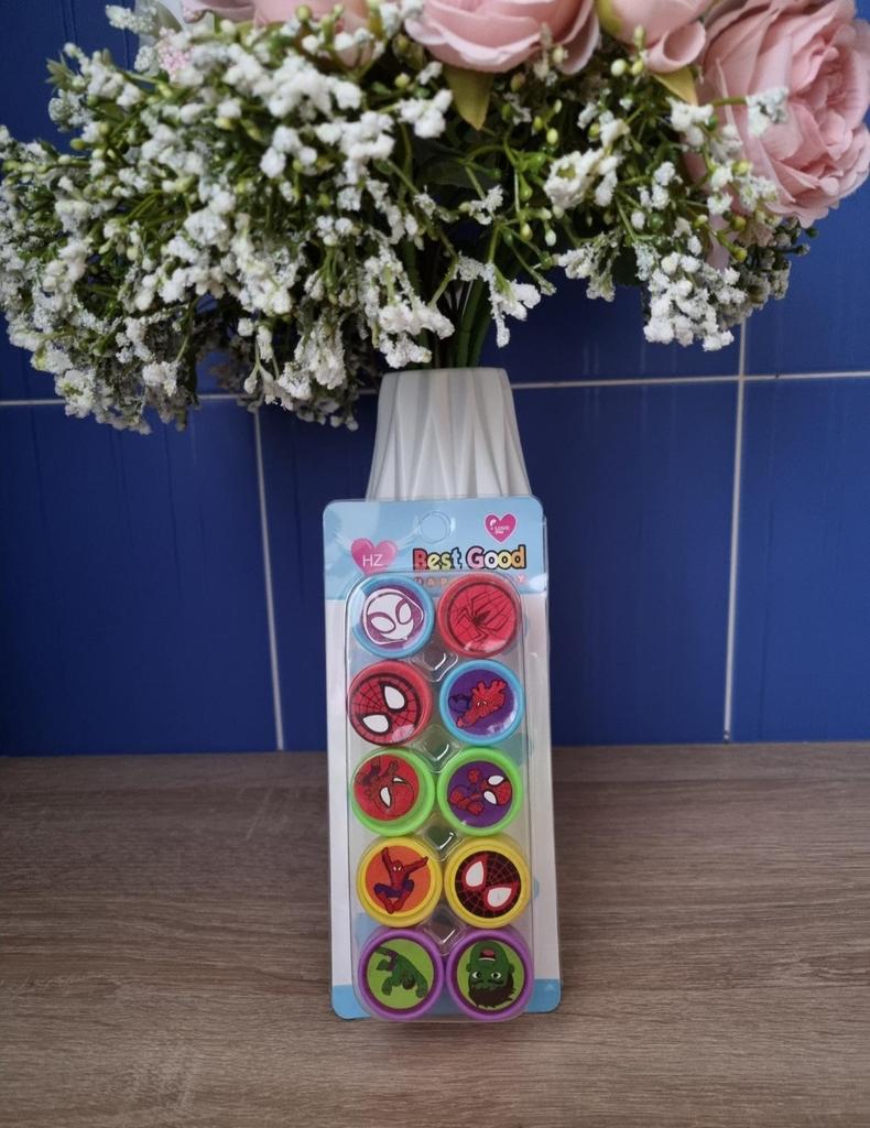 ❤️👍Отличный детский набор игрушечных печатей! В комплекте 10 штук с яркими изображениями Человека-паука и других популярных героев, которые сразу привлекают внимание ребенка. Печати хорошо выполнены, рисунки четкие и легко отпечатываются на бумаге без сильного нажатия. Размер печатей удобный для детской руки, ребенку легко держать и пользоваться ими самостоятельно. Чернила уже встроены, ничего дополнительно покупать не нужно. Материал легкий, без резкого запаха, выглядит безопасно для детей. Набор отлично подходит для игр, творчества, украшения тетрадей, открыток и альбомов, а также для поощрения ребенка. Ребенок играет с большим интересом, фантазирует и придумывает свои истории с любимыми героями. Хороший вариант как для подарка, так и для ежедневных игр. Рекомендую!