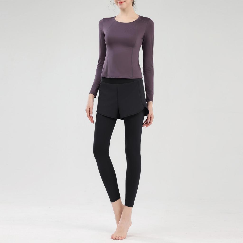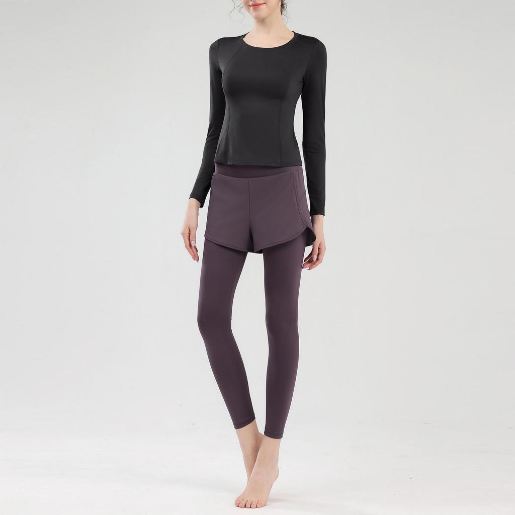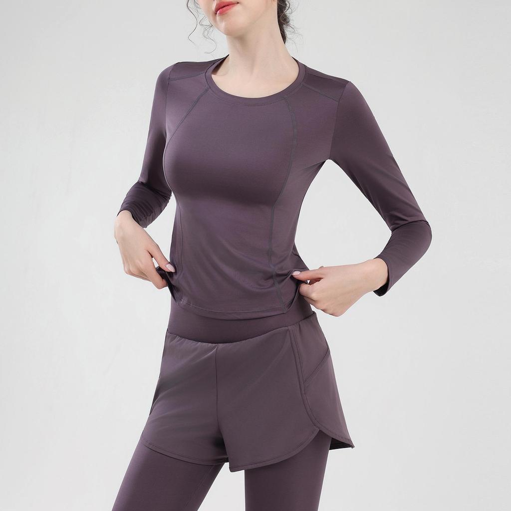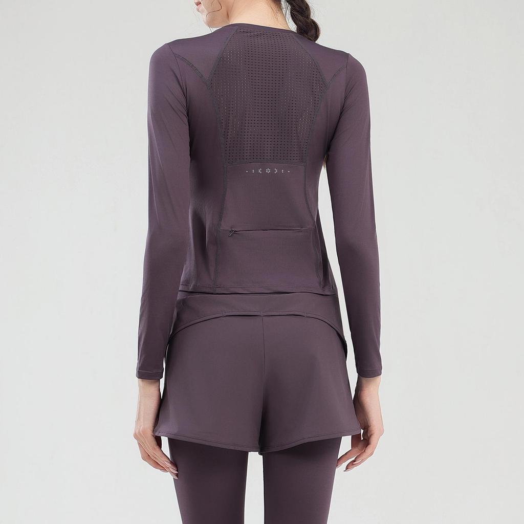 Женский быстросохнущий спортивный комплект для йоги с топом с длинным рукавом и задним карманом для бега