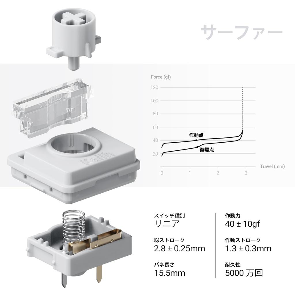 Cloud Switch Series: Made with POM (self-lubricating material)—maintains a smooth keystroke feel even over time. The Cloud Series offers a light actuation force, a solid bottom-out feel, and a clear initial rebound. Furthermore, the switch tolerance has been reduced by 0.1mm, resulting in a smoother, more consistent key return.