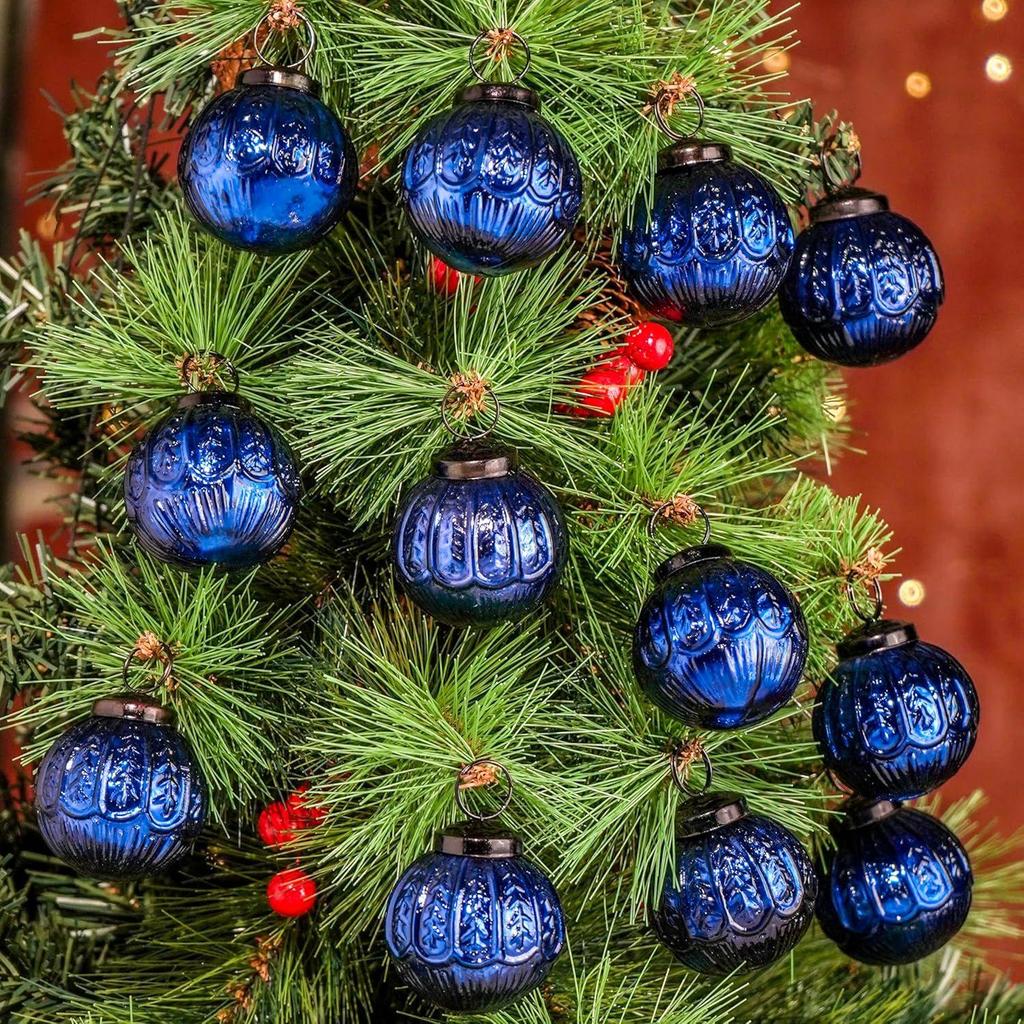 12 Винтажных Меркуриевых Больших Рождественских Украшений Королевский Синий Уникальные Стеклянные Шары для Рождественской Елки, Хэллоуина, Нового Года, Дня Святого Валентина